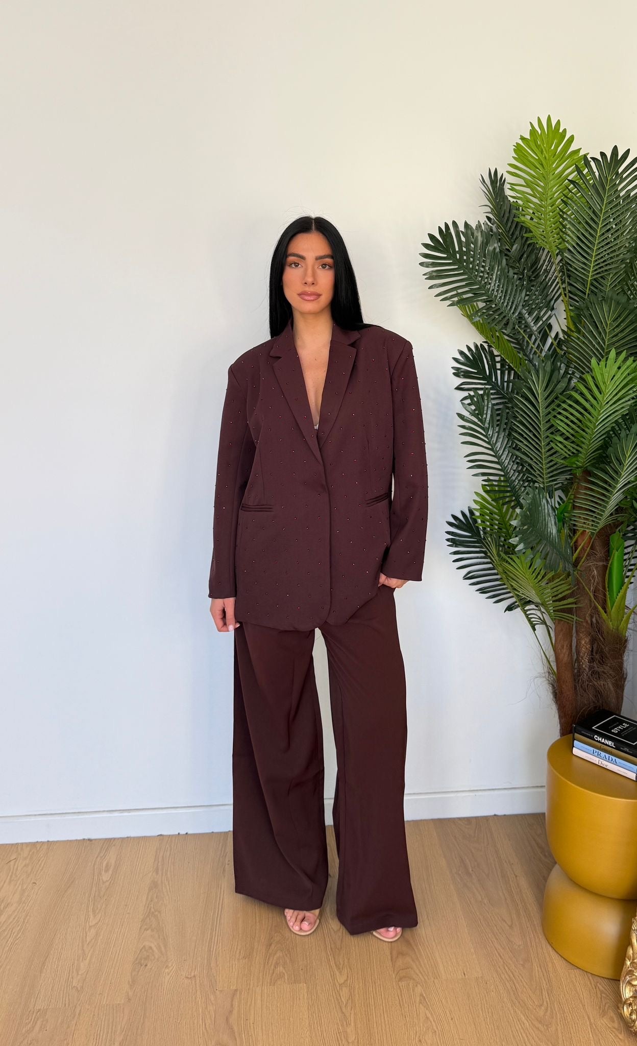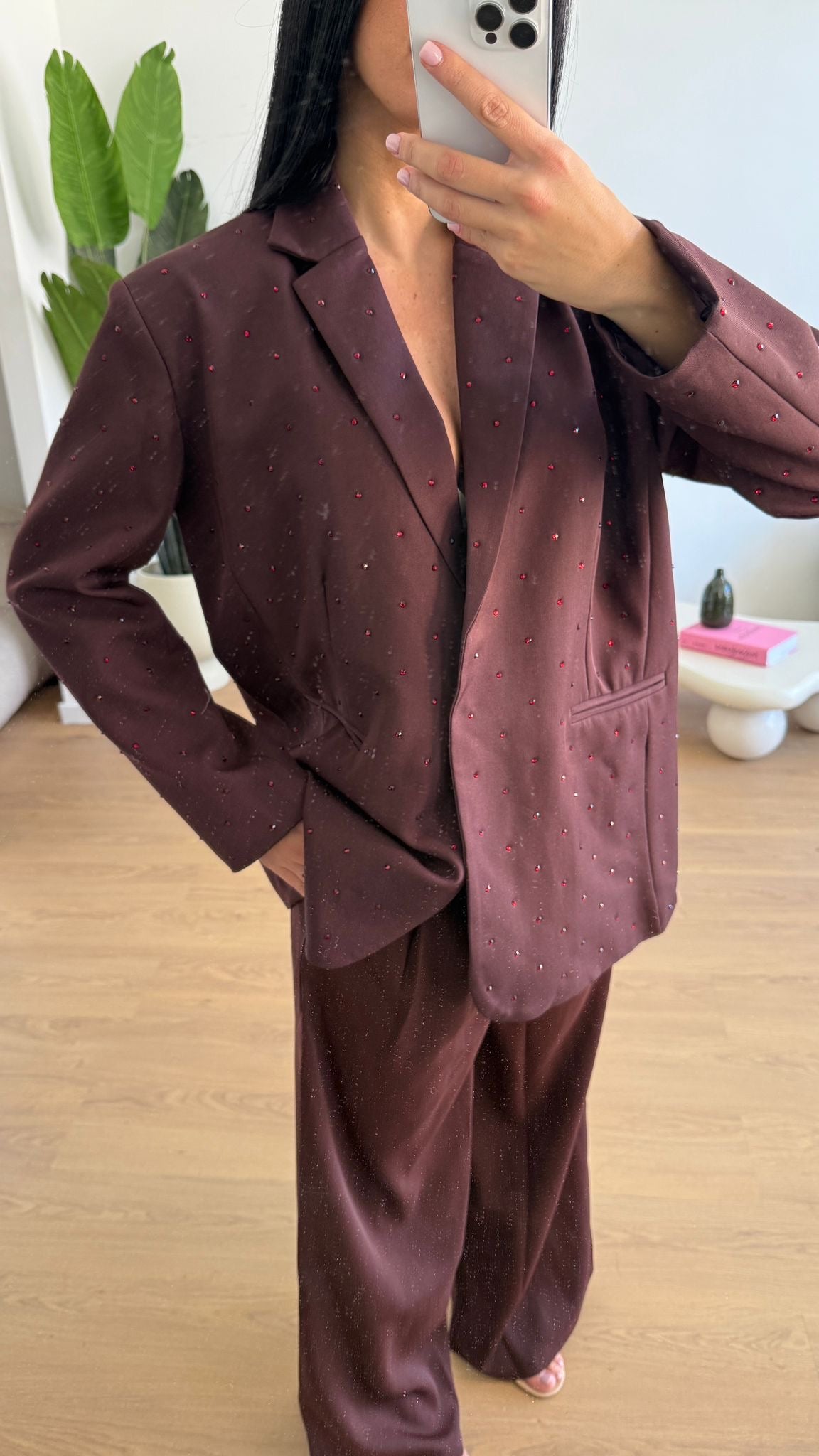 Blazer da donna con spalline imbottite, foderato internamente con applicazione strass, vestibilita over ma veste regolarmente la propria taglia e la modella indossa taglia S/M
