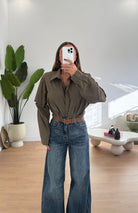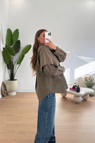 Camicia da donna con spalline imbottite e maniche removibili modello oversize e vestirà bene fino ad una M/L