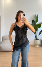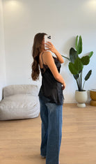 Canotta da donna over effetto raso con definitore in ricamo e veste bene fino ad una M/L