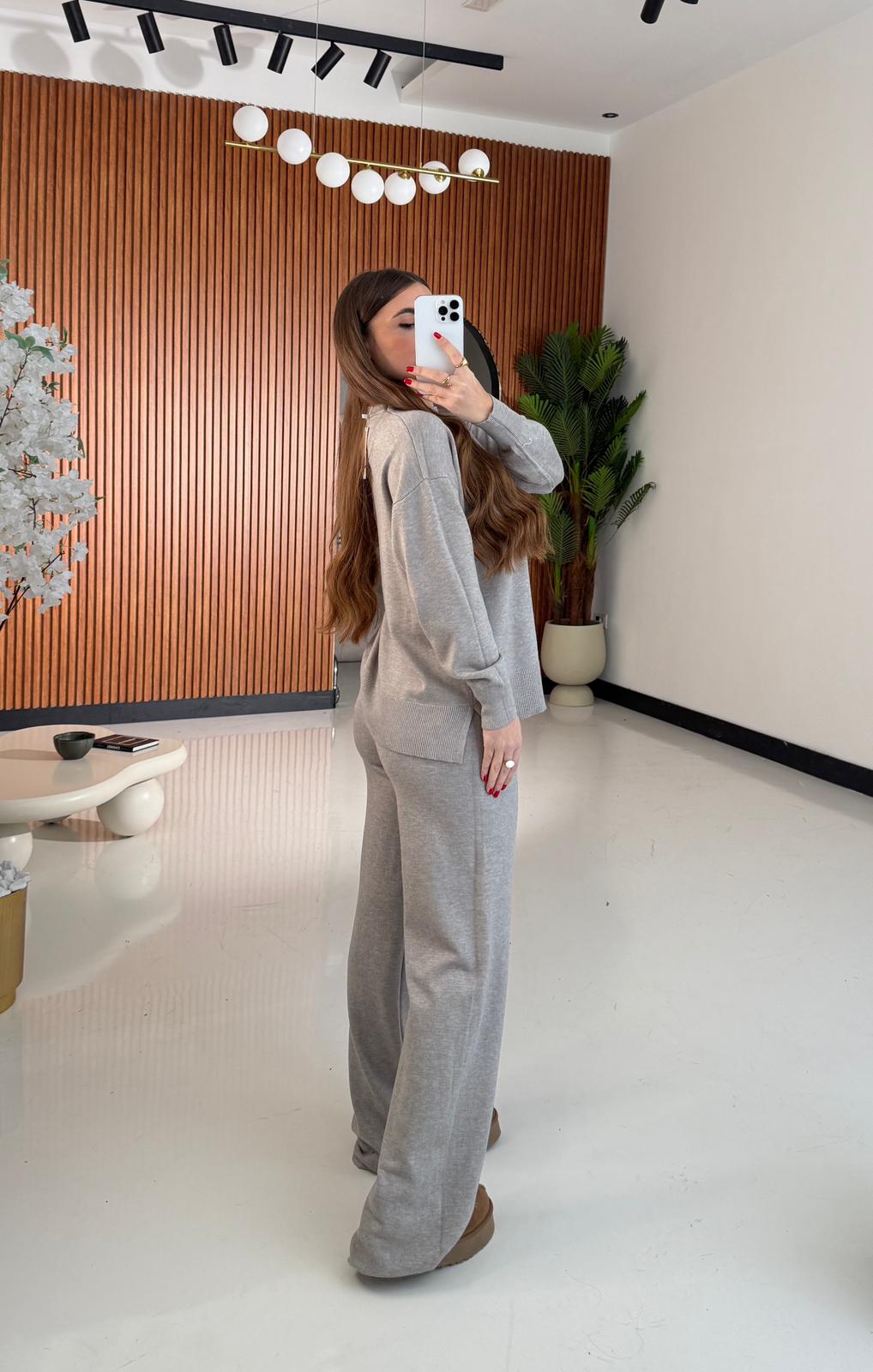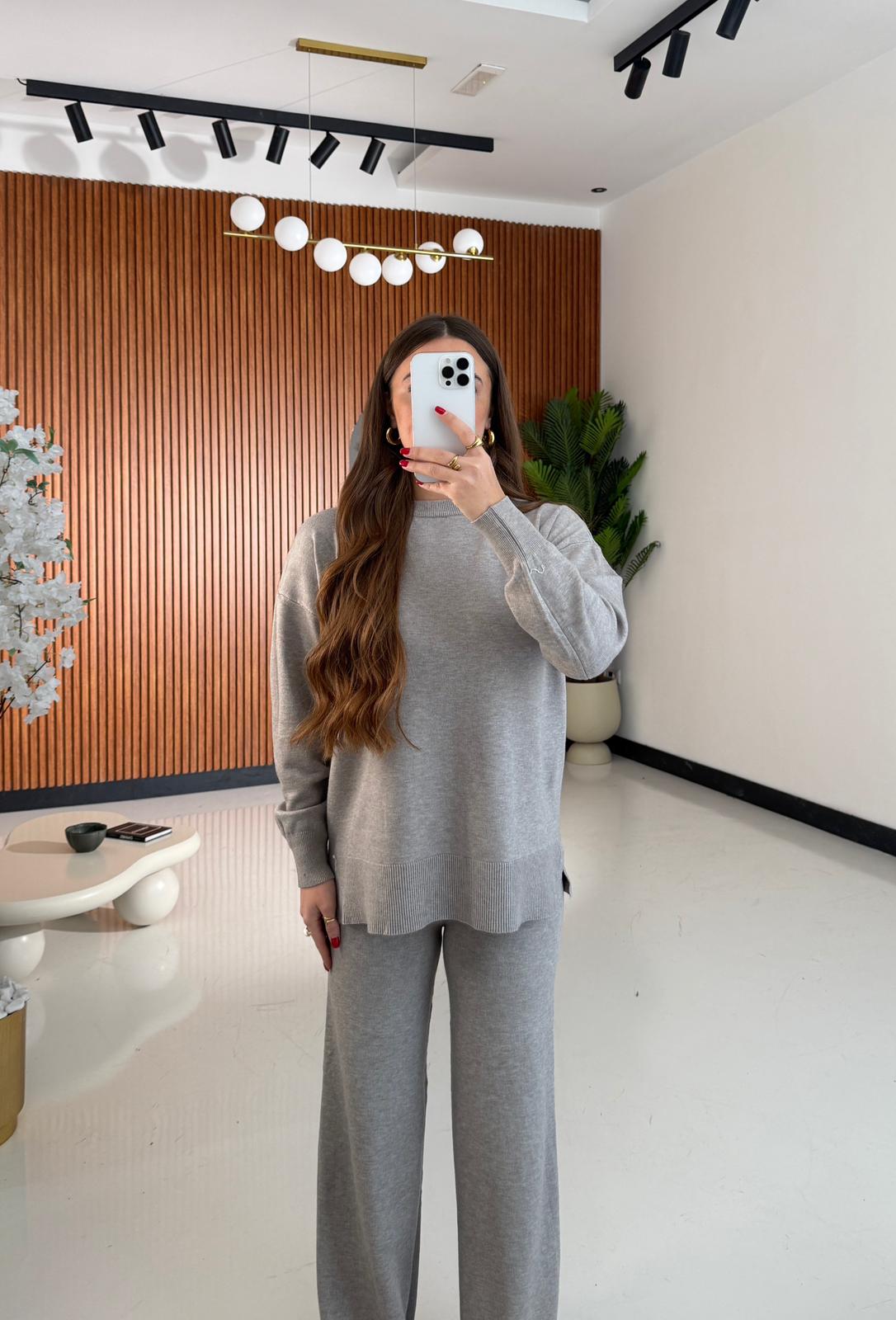 Coordinato da donna in lana rasata composto da maglia oversize e pantalone con elastico in vita e laccetti regolabili. Taglia unica, tessuto elasticizzato, veste bene fino ad una taglia M/L piena. La modella é alta 1,65 e pesa 52/53 kg.