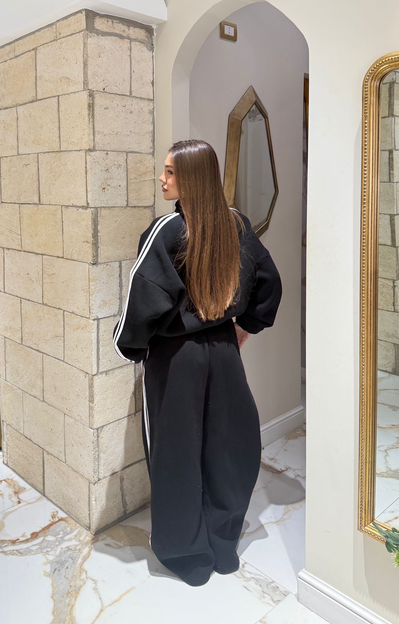 Coordinato da donna composto da felpa con chiusura in zip sul davanti, polsini ed elastico sul finale in vita e pantalone con elastico in vita e laccio regolabile, coordinato felpato in pile internamente e vestirà bene fino a d una M/L piena