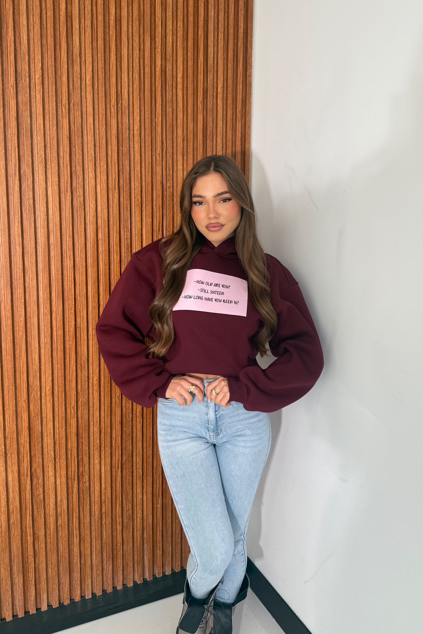 Felpa da donna crop con cappuccio e polsini, felpata internamente in pile e vestirà bene fino ad una M /L