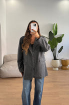 Giacca da donna con spalline imbottite, foderata internamente e vestibilita oversize e vestirà bene fino ad una M/L piena