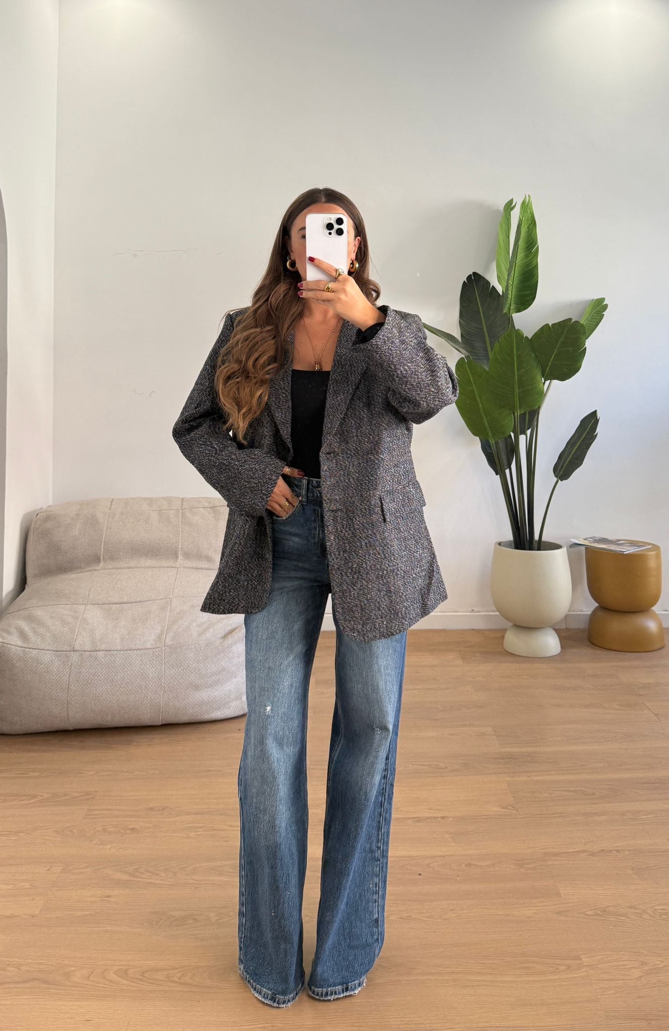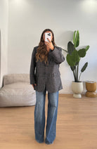 Giacca da donna con spalline imbottite, foderata internamente e vestibilita oversize e vestirà bene fino ad una M/L piena