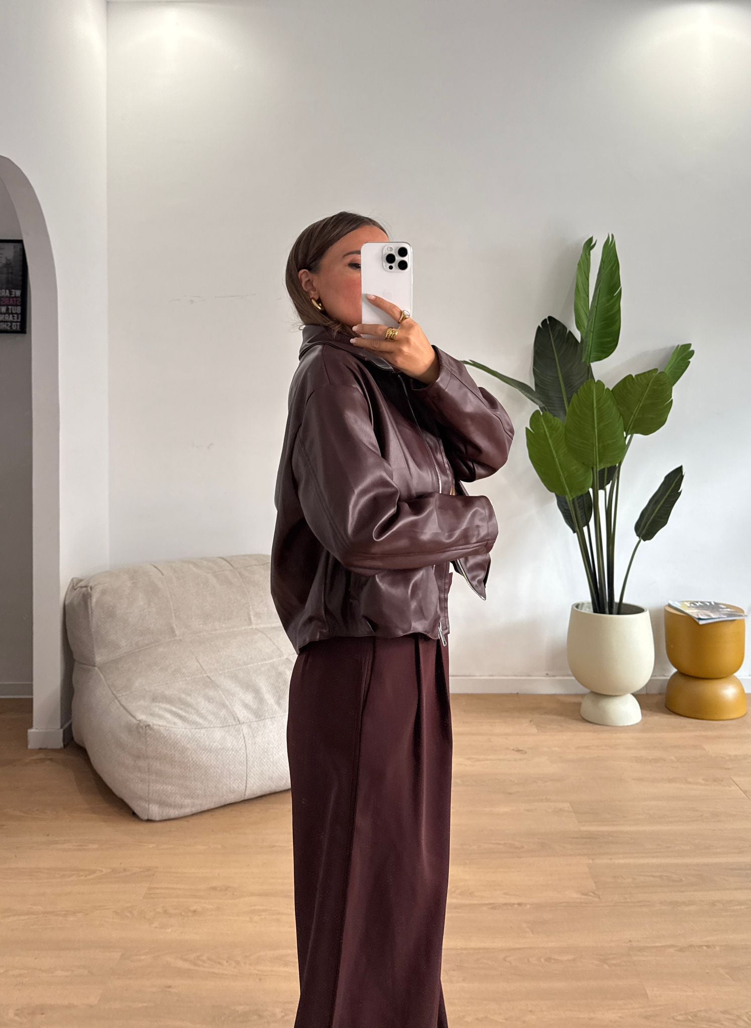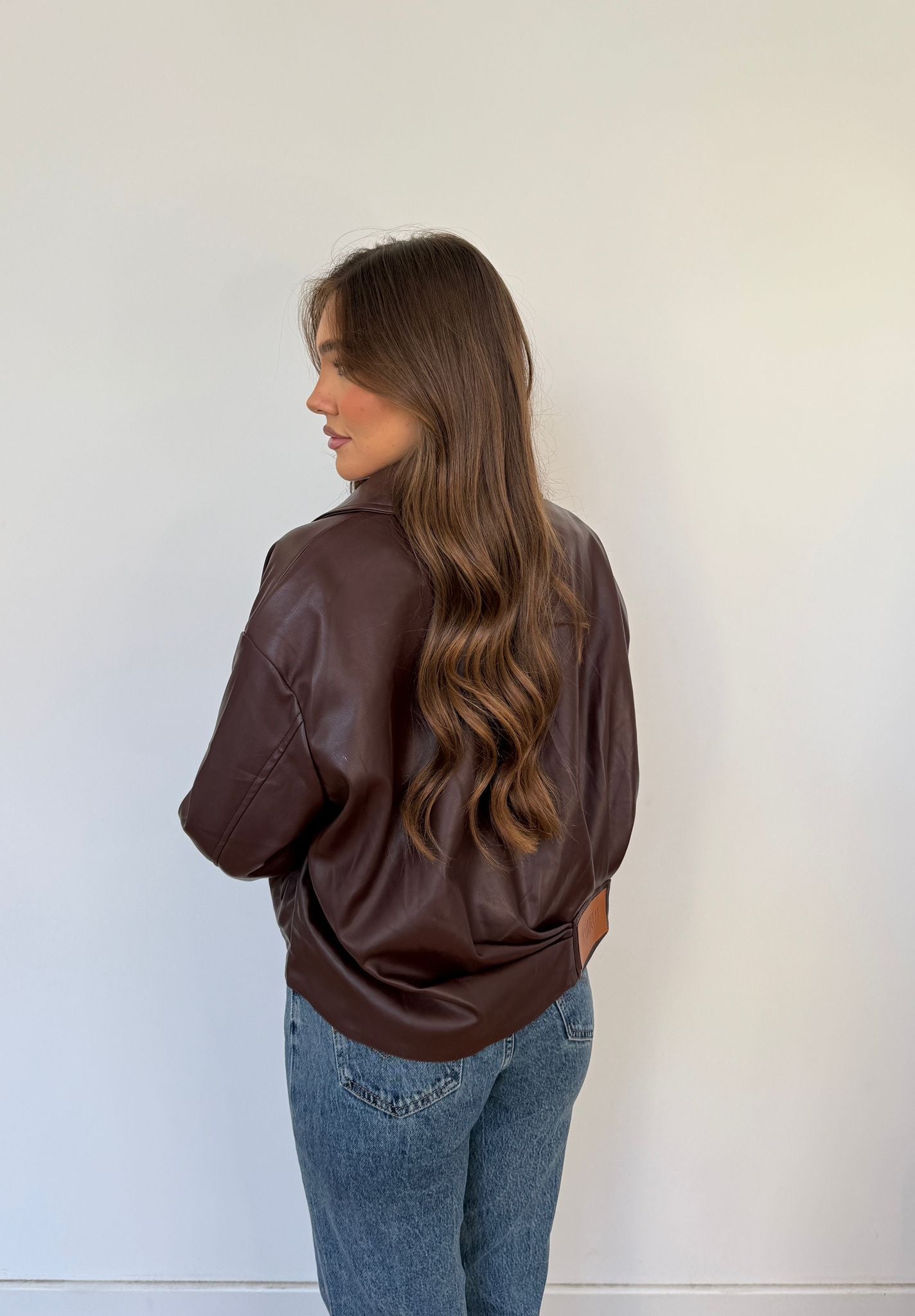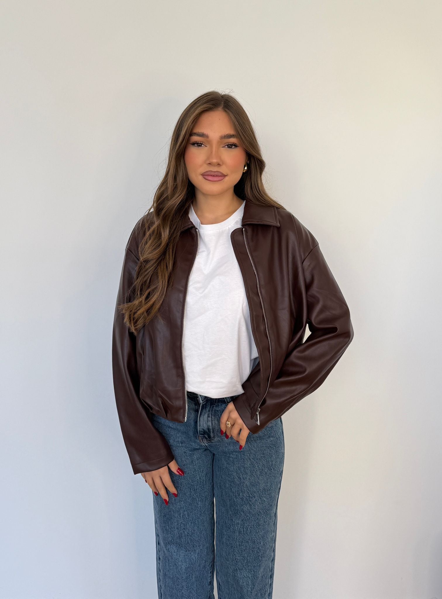 Giubbino da donna in ecopelle foderato internamente, top quality e veste regolarmente la propria taglia e la modella indossa taglia S/M