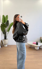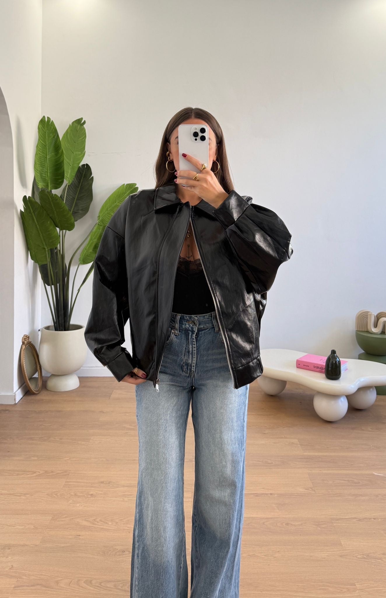 Giubbino da donna in vernice lucida con chiusura zip sul davanti e elastico sul finale, vestirà bene fino ad una M/L