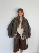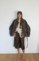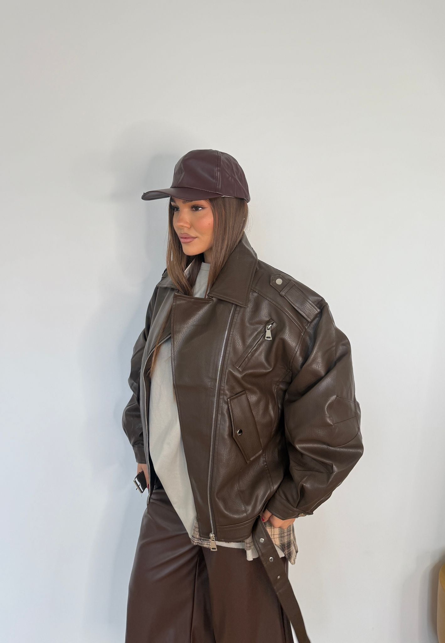 Chiodo in ecopelle, vestibilità oversize, manica a sbuffo con chiusura zip e vestirà bene fino ad una L/XL