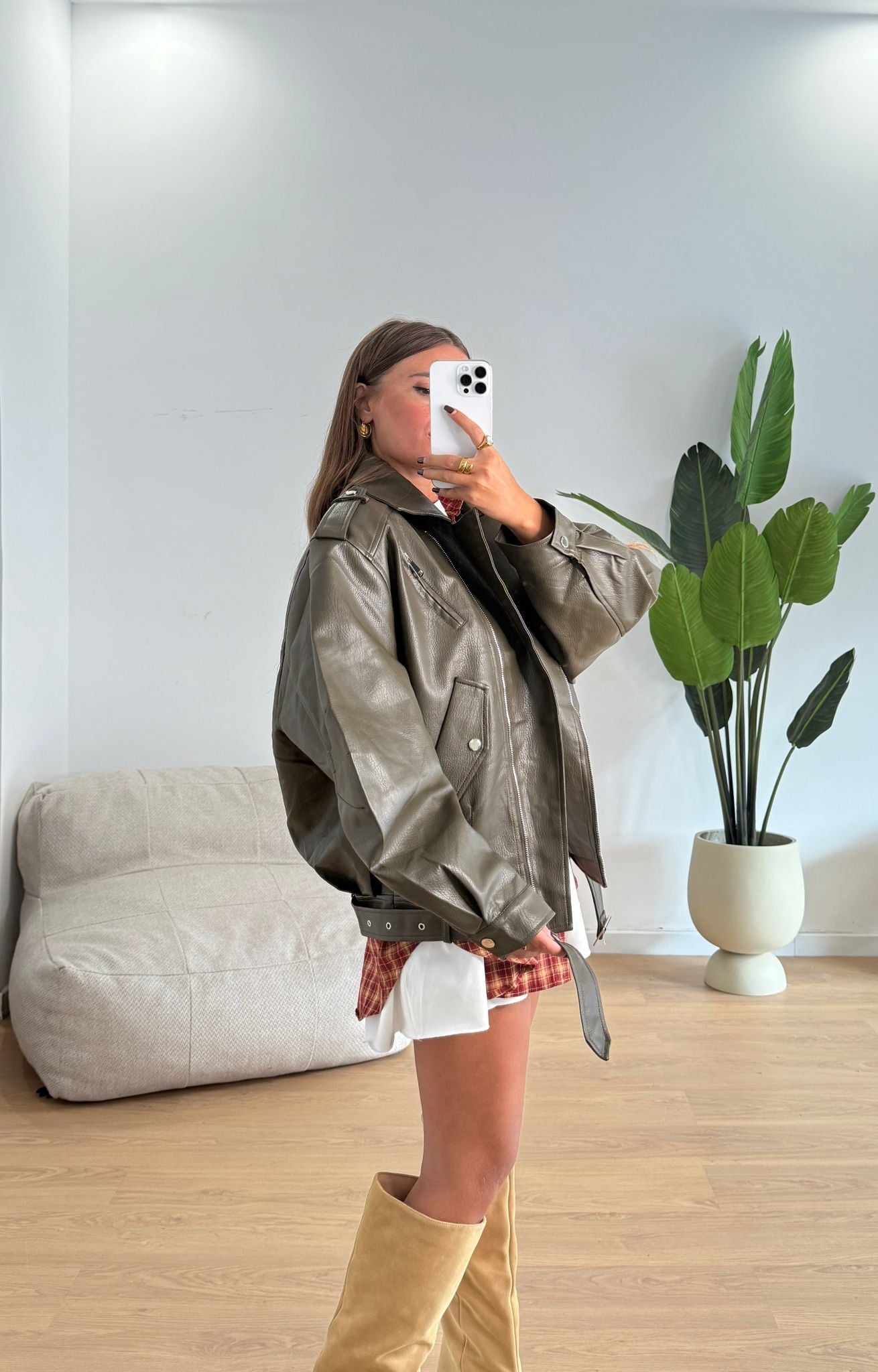 Chiodo in ecopelle, vestibilità oversize, manica a sbuffo con chiusura zip e vestirà bene fino ad una L/XL