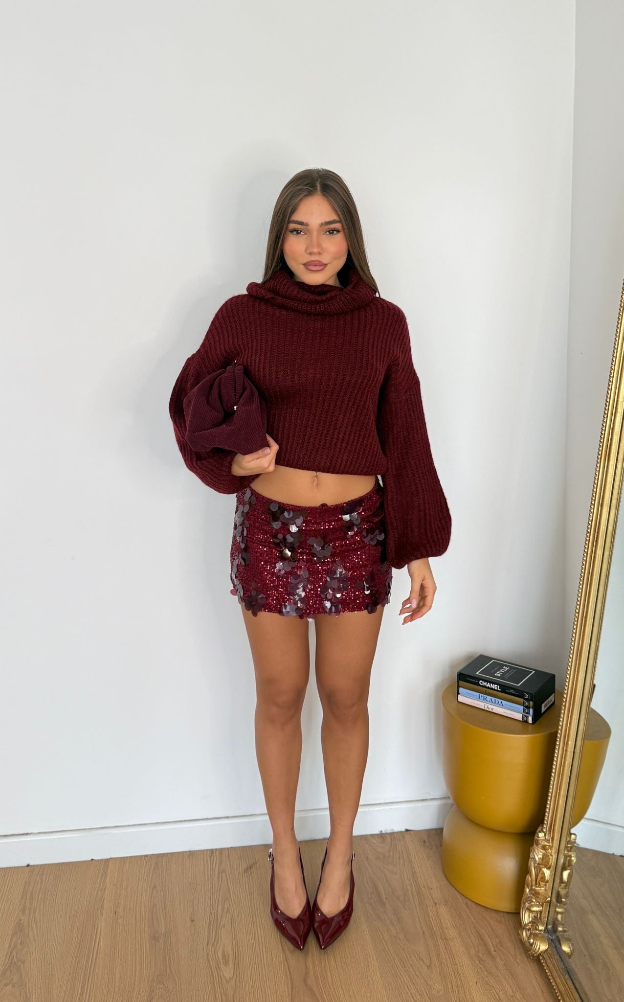 Gonna da donna con paillettes foderata internamente, tessuto elasticizzato e veste bene la propria taglia, la modella indossa taglia XS