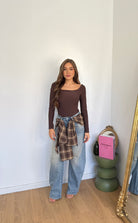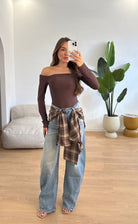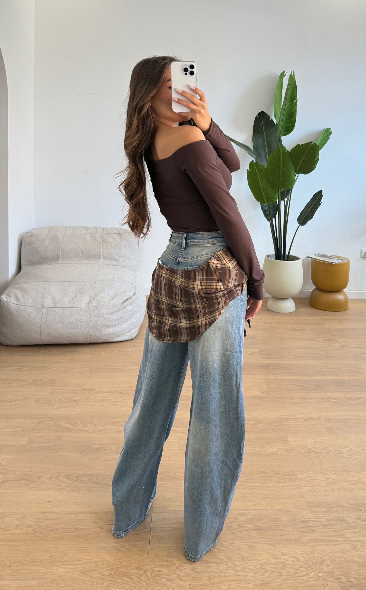 Jeans da donna elastico , la camicia e’ removibile. modello balloon fit. Veste regolarmente la propria taglia, in foto indossa taglia XS.