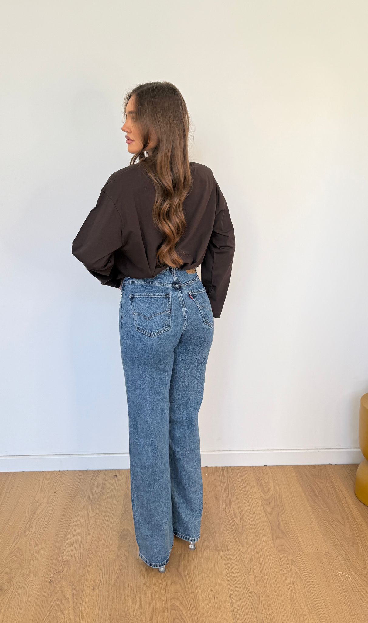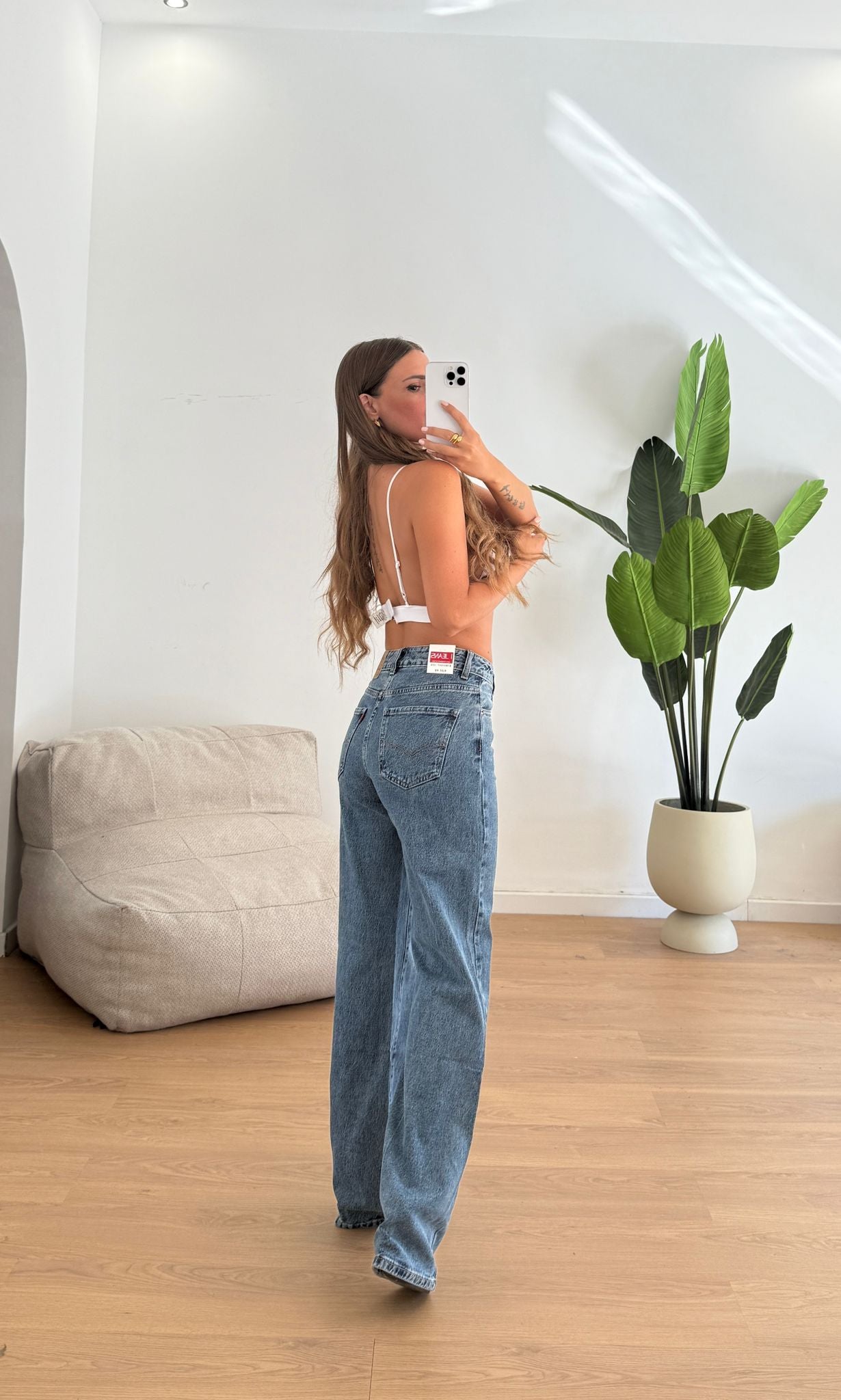 Jeans da donna in denim nero tessuto elasticizzato e veste regolarmente la propria taglia e la modella indossa taglia XS