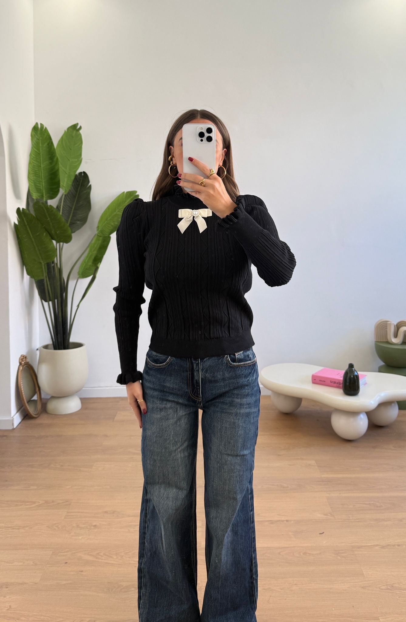 Maglioncino da donna con colletto tessuto elasticizzato e veste bene fino ad una M/L