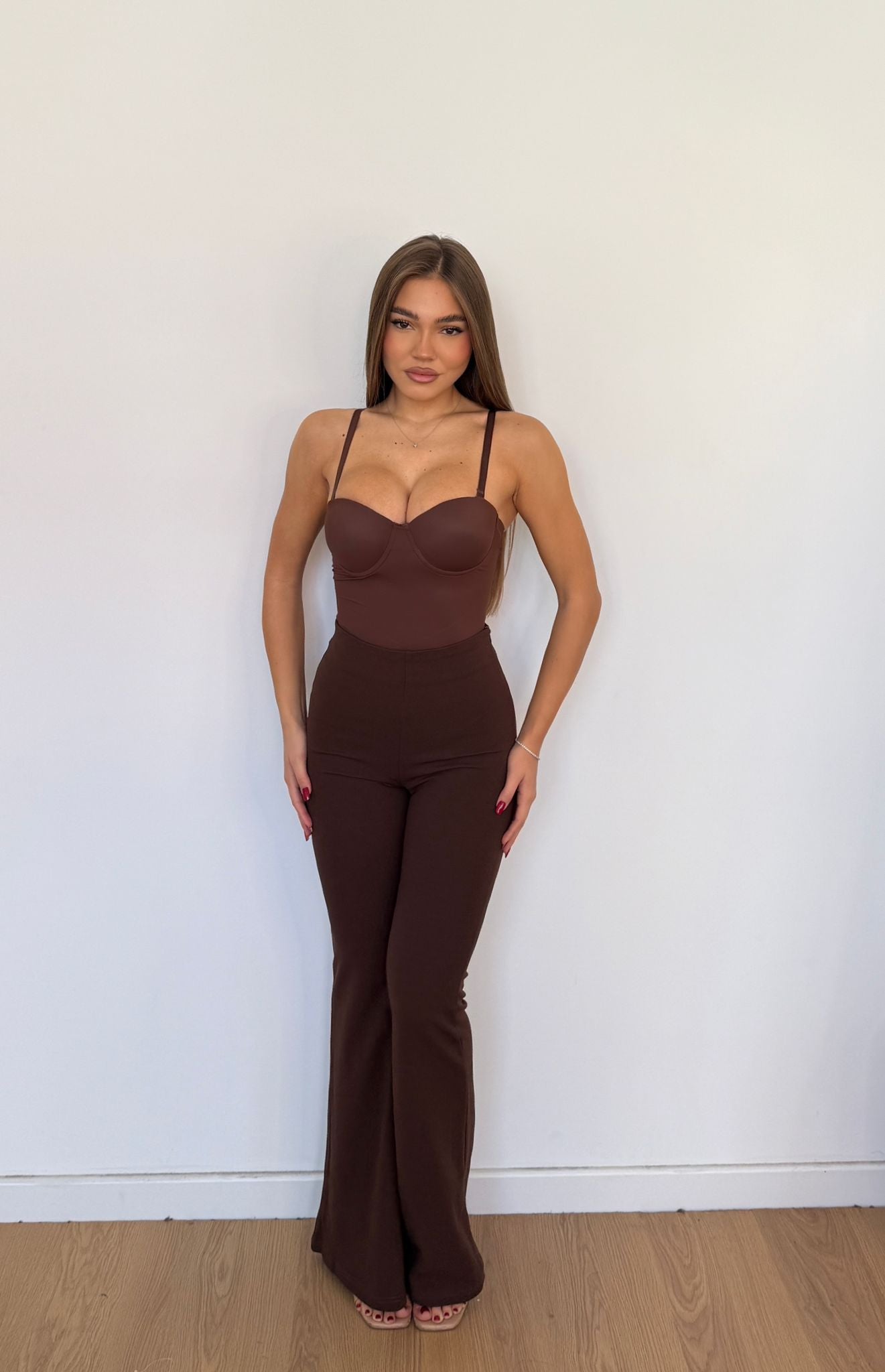 Pantalone da donna a zampa tessuto elasticizzato ma veste regolarmente la propria taglia e Giusy indossa taglia XS