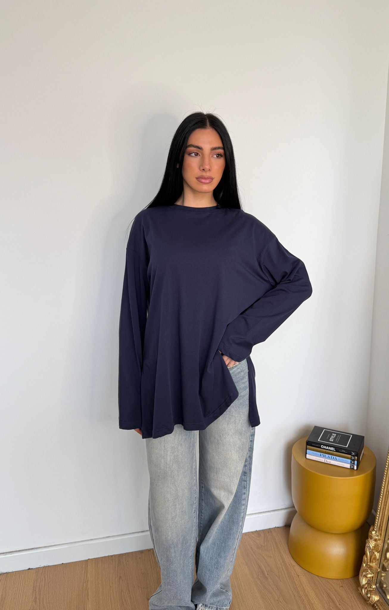 Shirt da donna vestibilità oversize ma veste regolarmente la propria taglia e la modella indossa taglia S/M