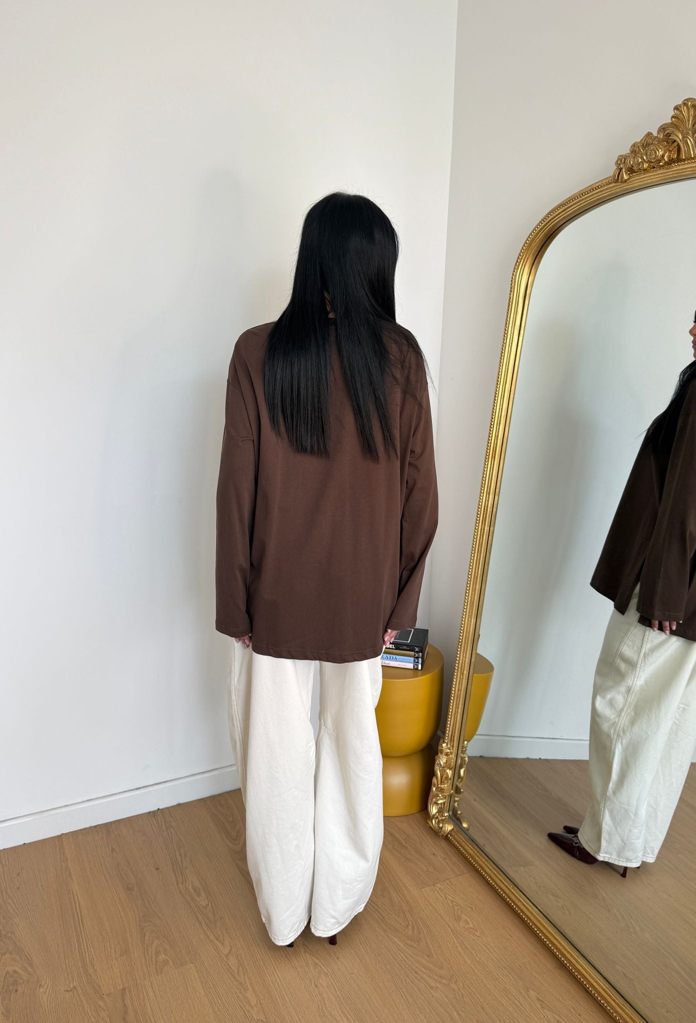 Shirt da donna vestibilità oversize ma veste regolarmente la propria taglia e la modella indossa taglia S/M
