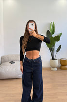 Shirt da donna crop in cotone elasticizzato e vestirà bene fino ad una M/L
