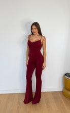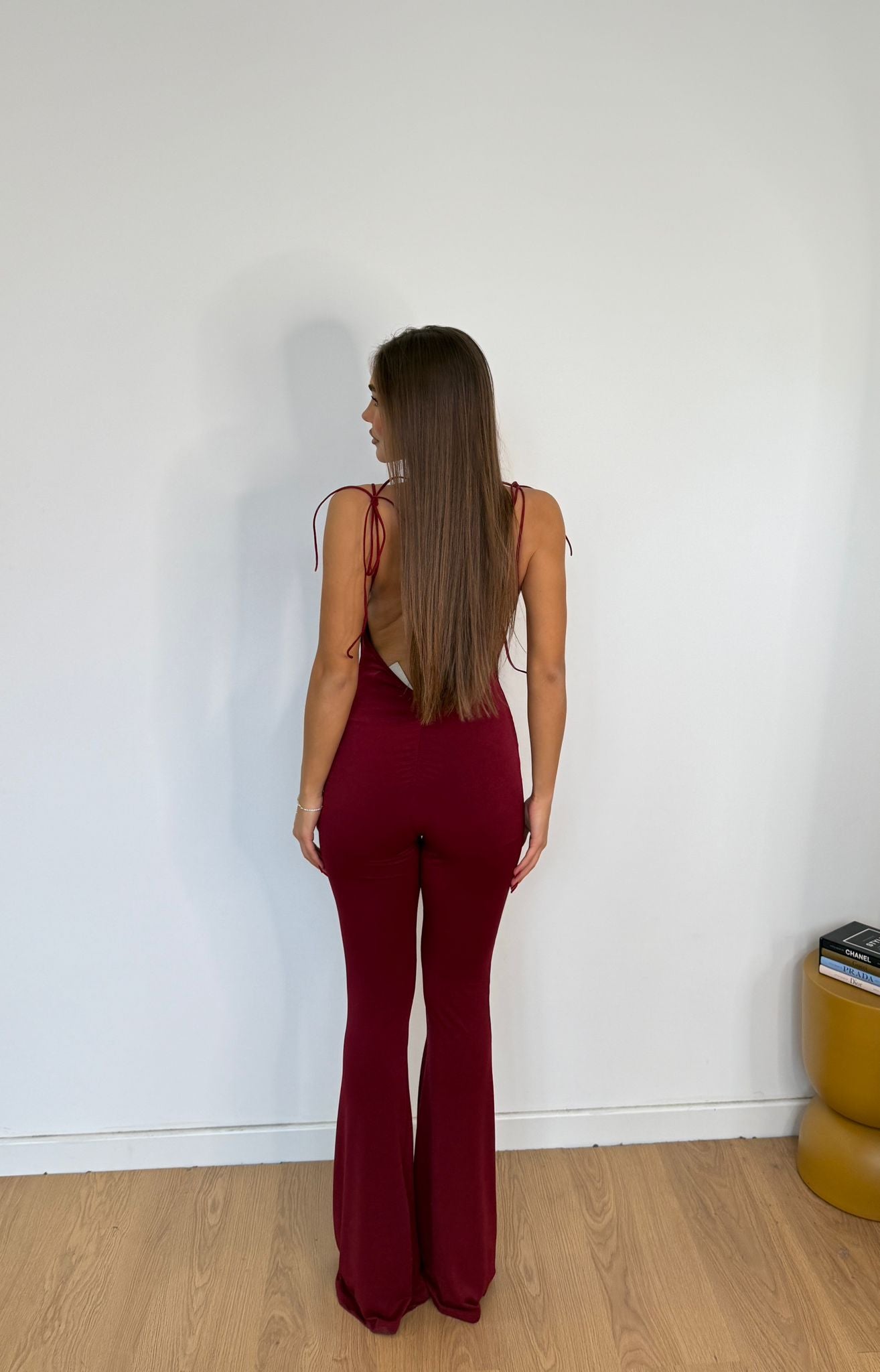 Tuta da donna a zampa,tessuto elasticizzato,bretelle regolabili e schiena scoperta e drappeggio sul retro. Vestibilita fino ad una 44