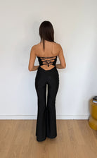 Tutone da donna a zampa in lycra con coppe imbottite e schiena scoperta ad intreccio, tessuti elasticizzato e vestirà bene fino ad una M/L