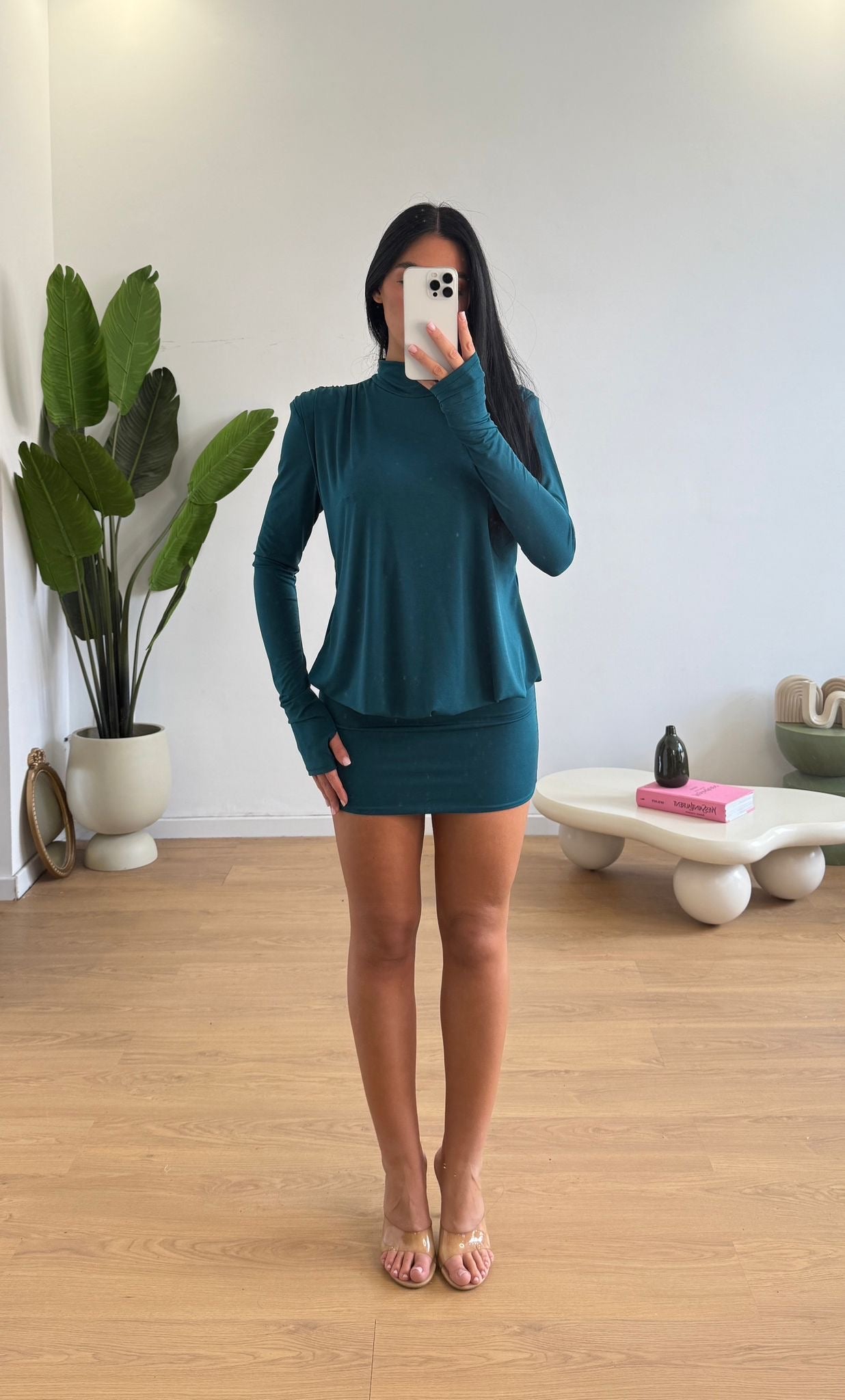 Vestitino da donna con spalline imbottite, mezzo colletto e scollatura morbida e profonda sul retro. Tessuto elasticizzato e vestirà bene fino ad una M/L
