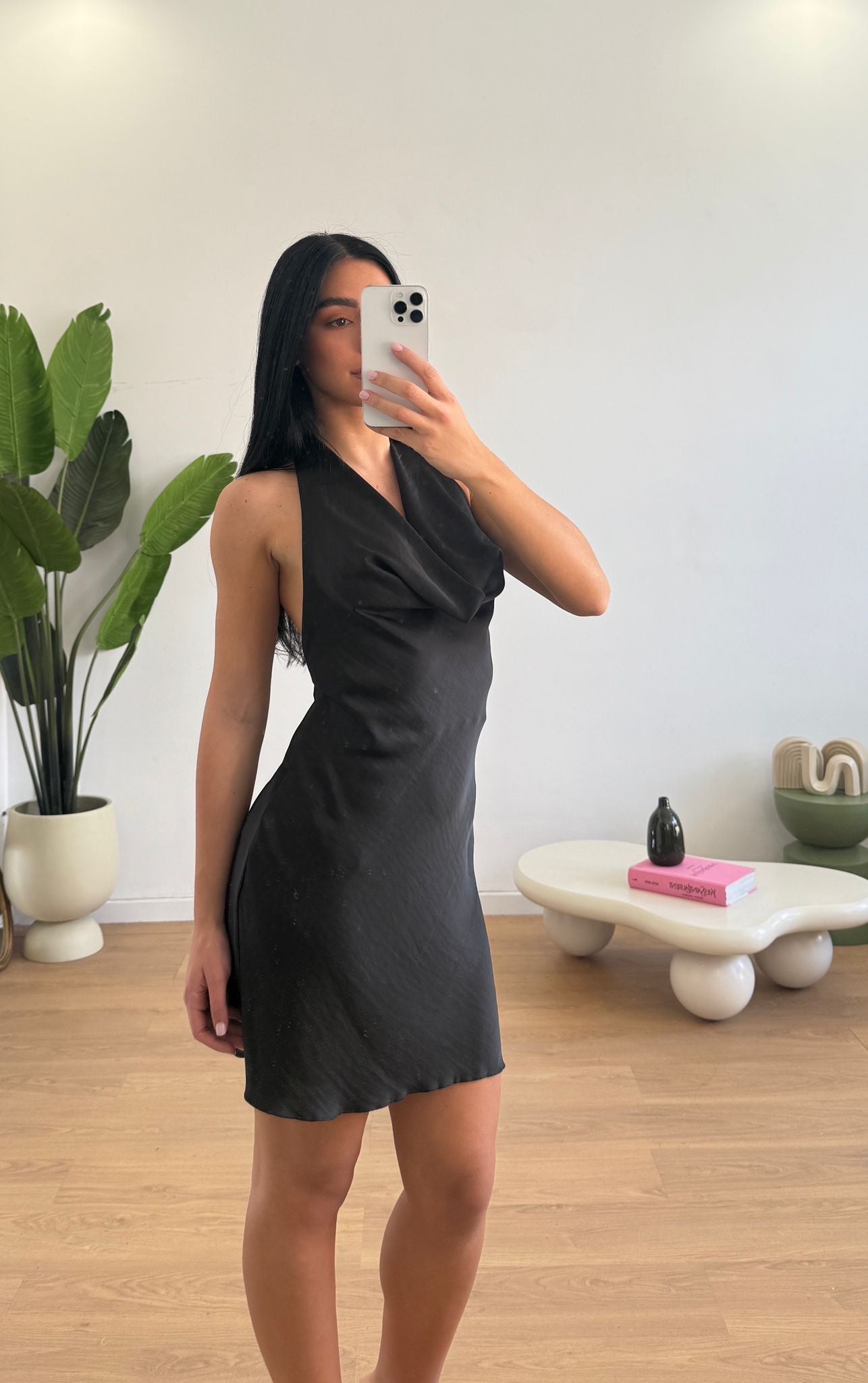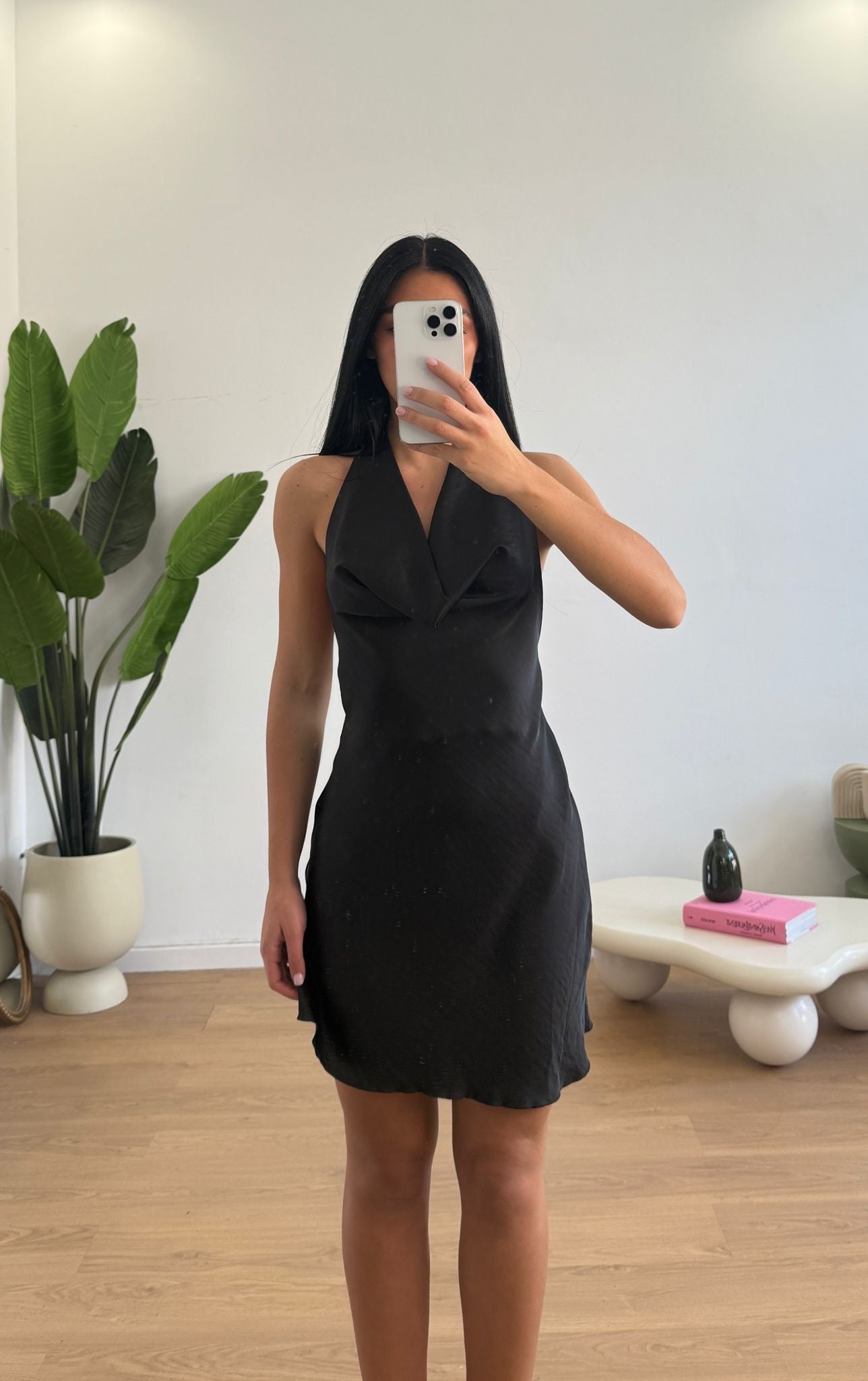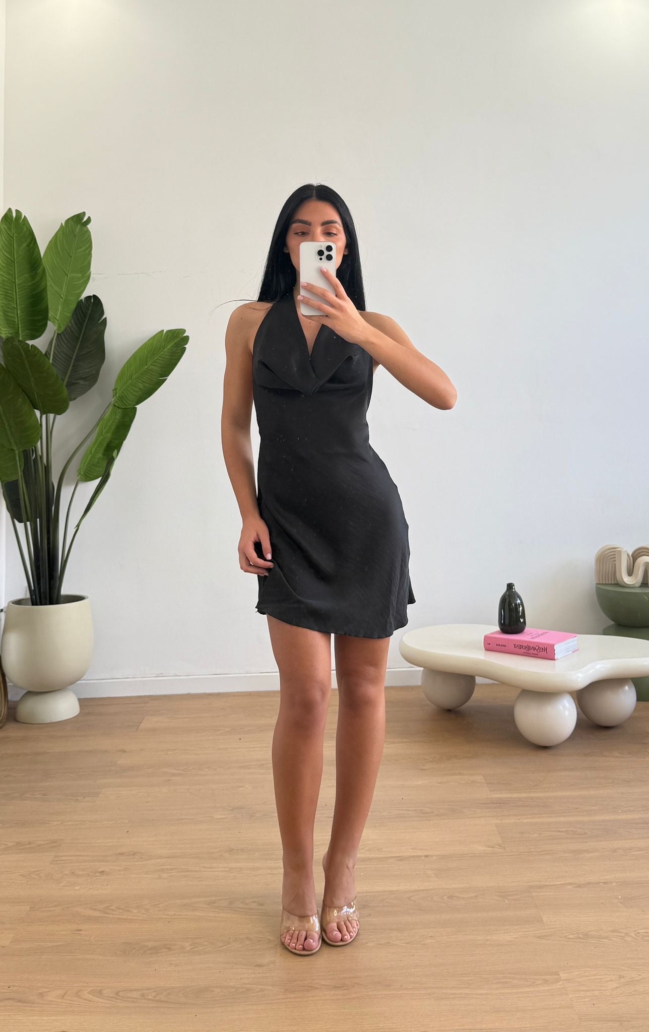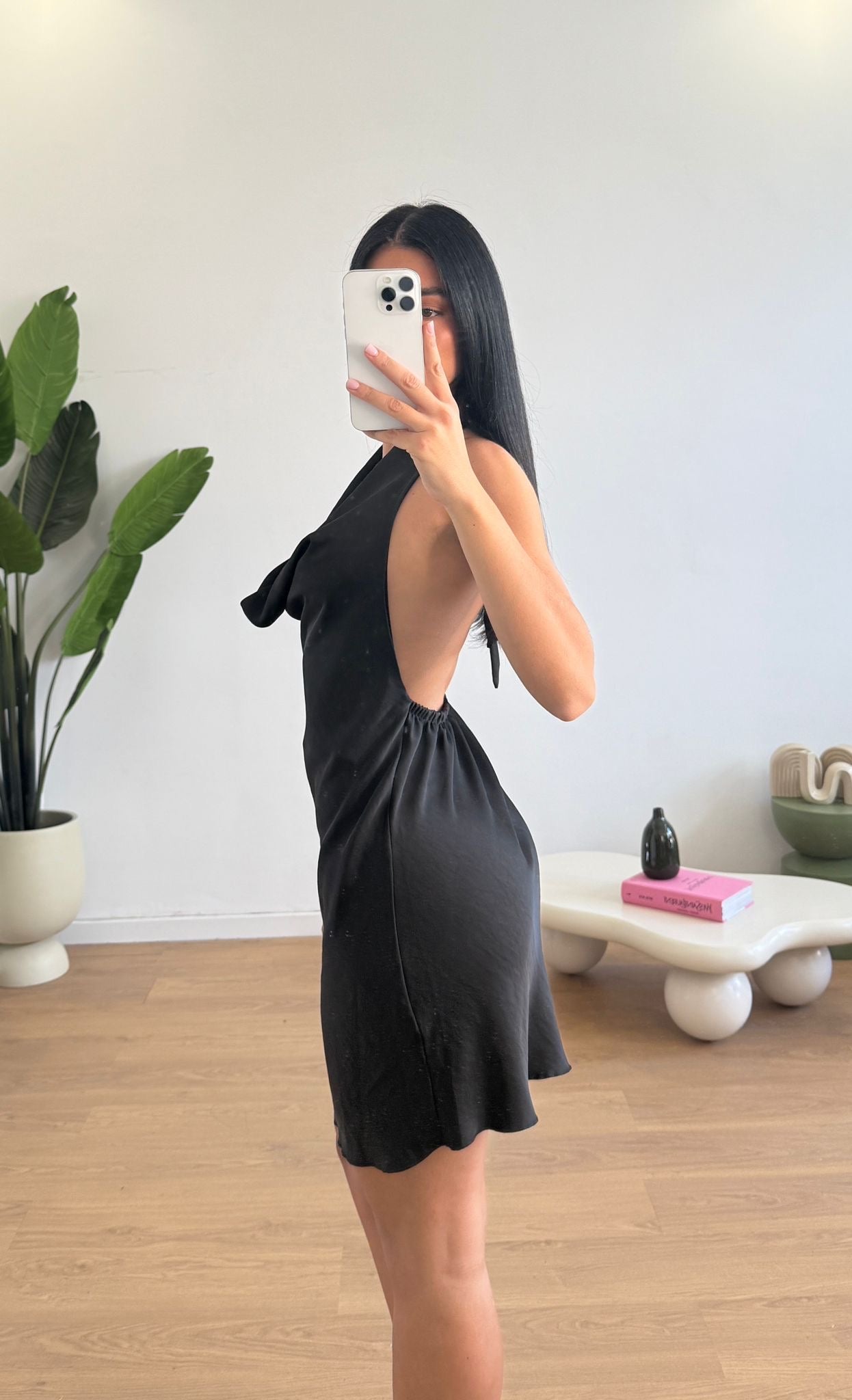 Vestitini da donna in tessuto raso con scollo all’americana con schiena scoperta ed elastico sul retro. Vestirà bene fino ad una M/L