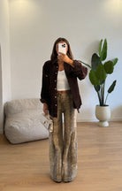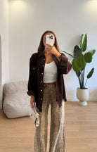Camicia da donna con chiusura bottincini sul davanti e veste regolarmente la propria taglia e la modella indossa taglia S