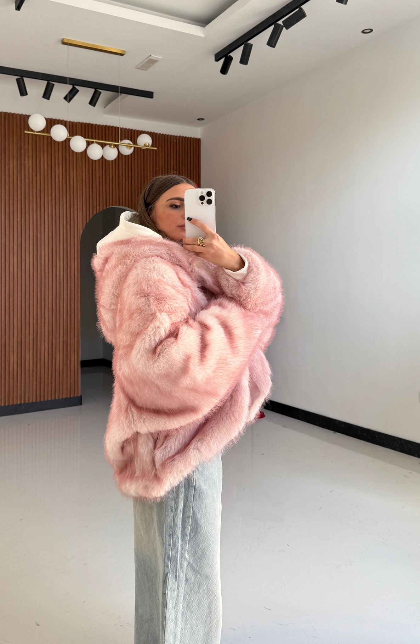 Pelliccia da donna ecofur foderata internamente con cappuccio, top quality e vestirà bene fino ad una L/XL