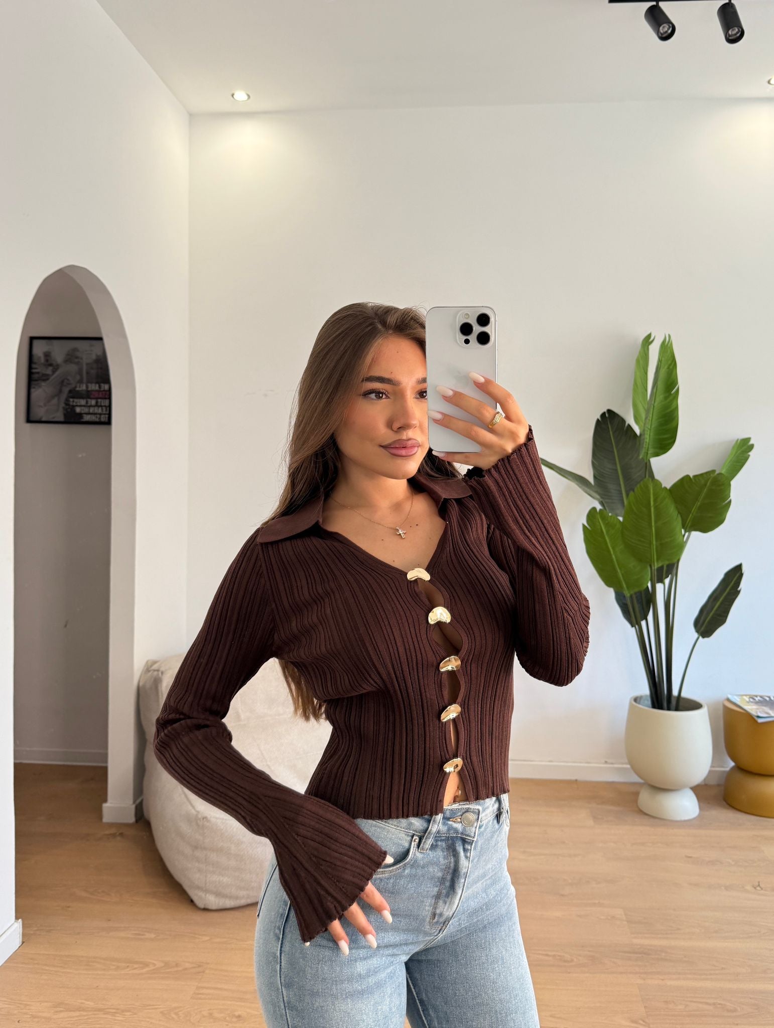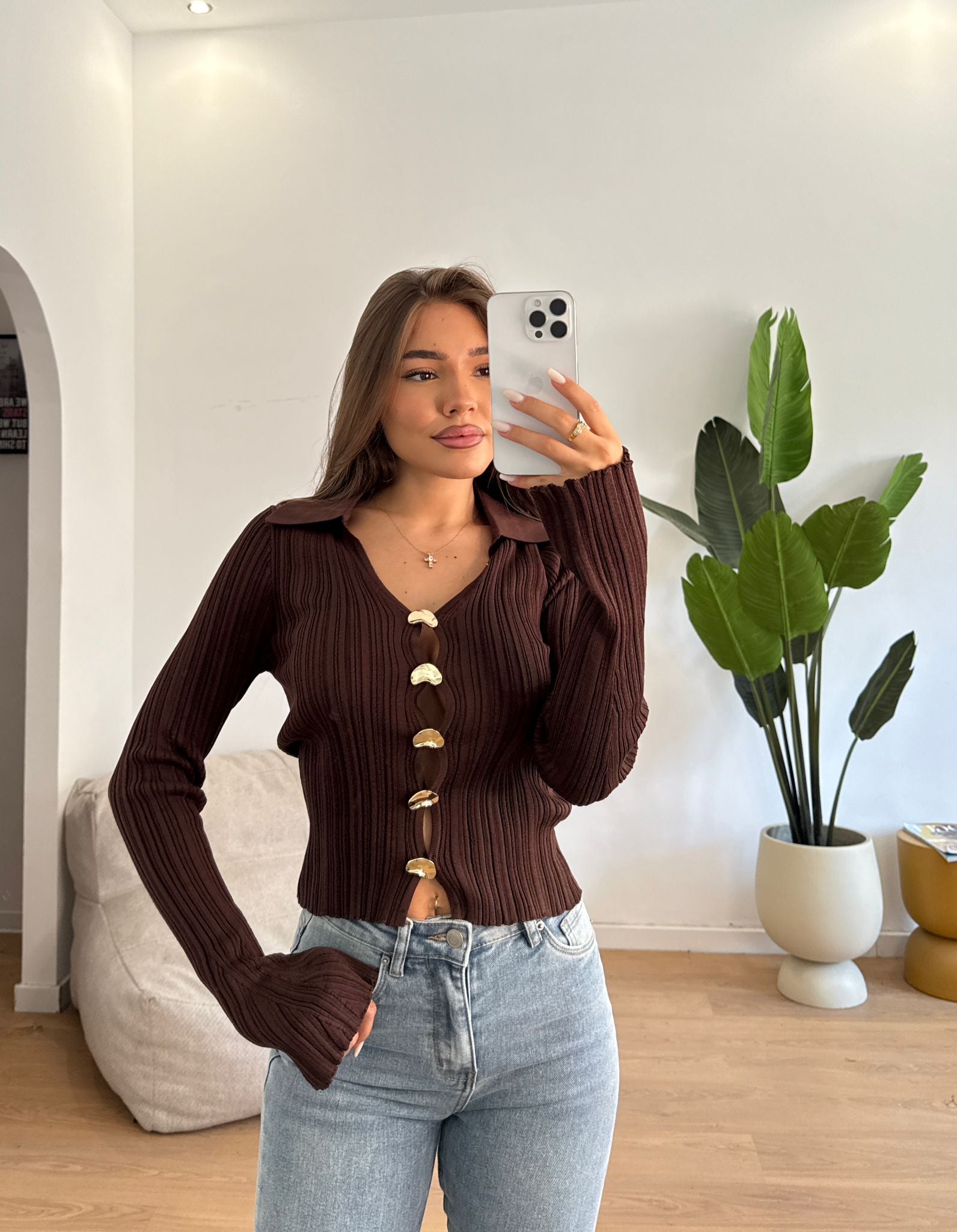 Cardigan da donna in filo tessuto elasticizzato e veste regolarmente la propria taglia e la modella indossa taglia S/M