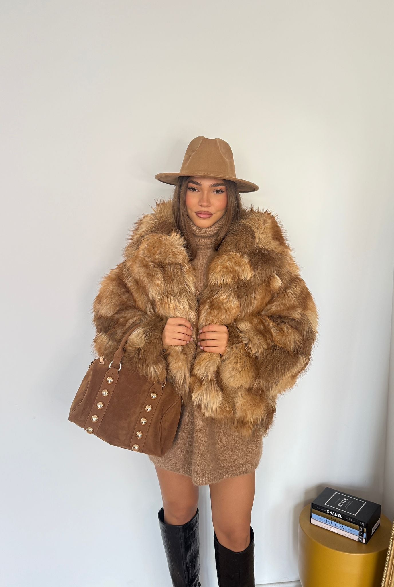 Cappello da donna in camoscio, regolabile internamente.