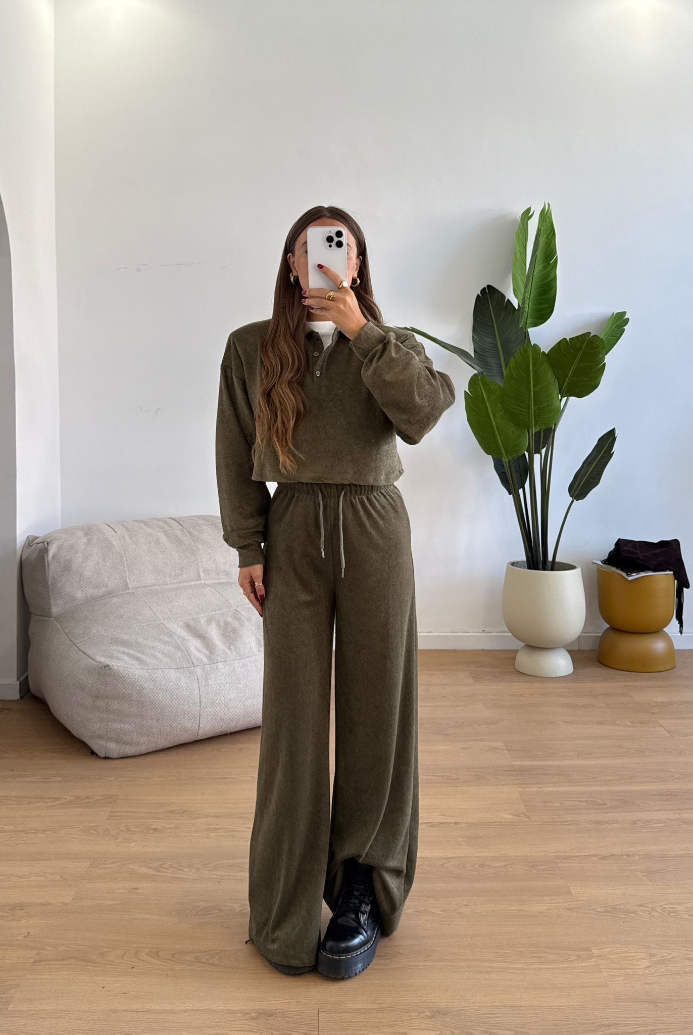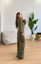 Coordinato da donna composto da felpa crop pantalone con elastico in vita e vestirà bene fino ad una M/L