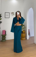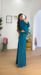 Coordinato da donna in misto Lino  composto blusa crop con manica a campana sul finale e gonna a sirena con cinturino compreso, vestirà bene fino ad una 44 piena