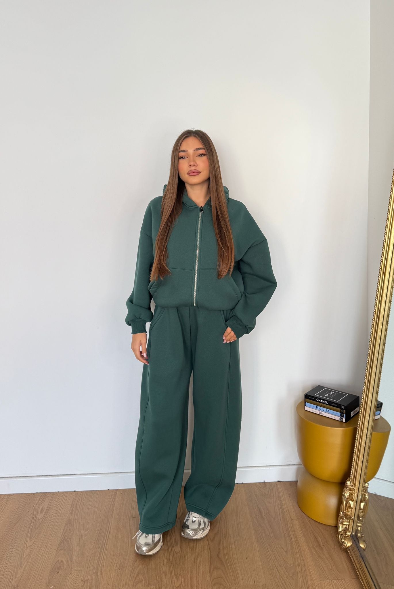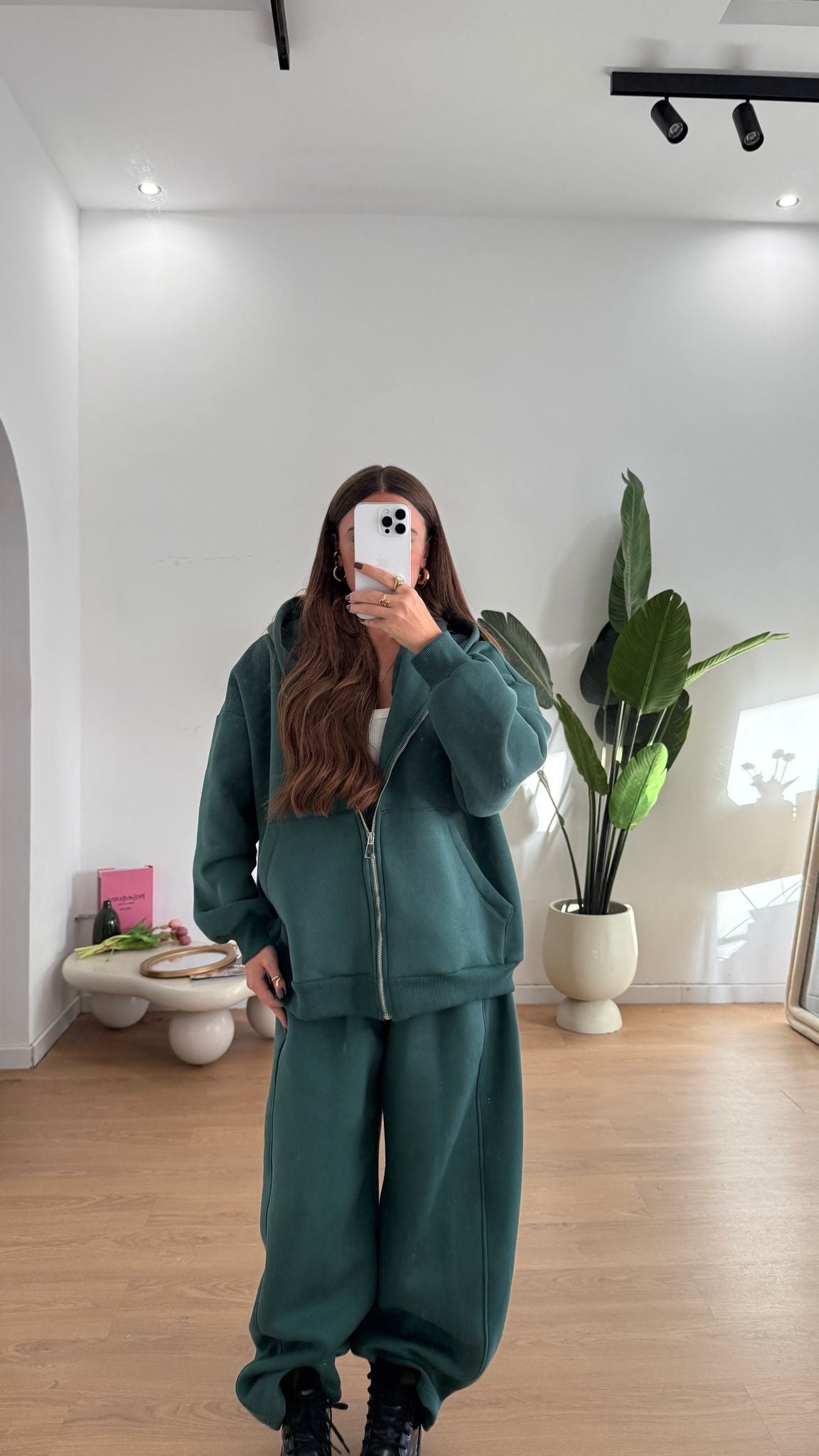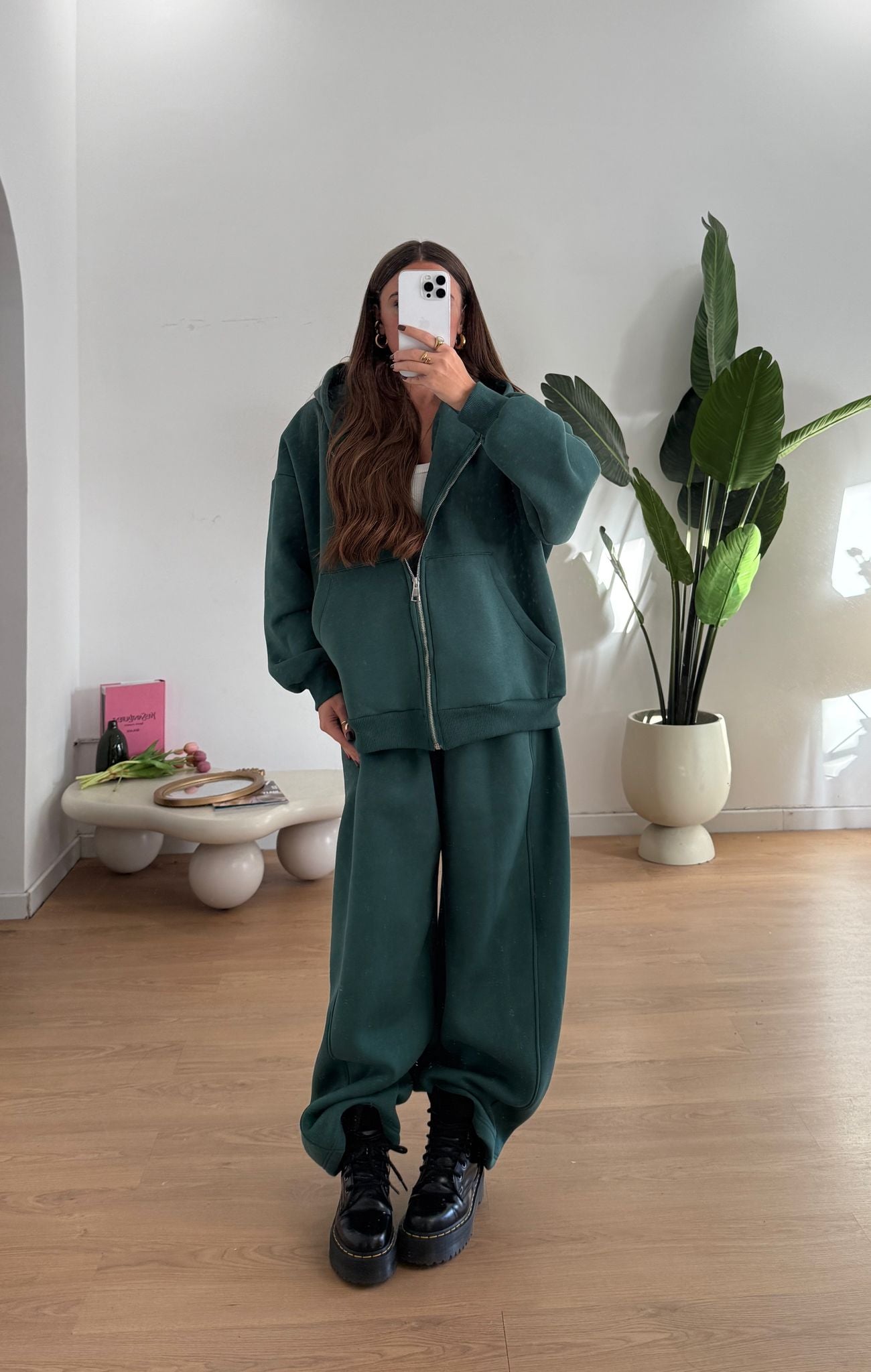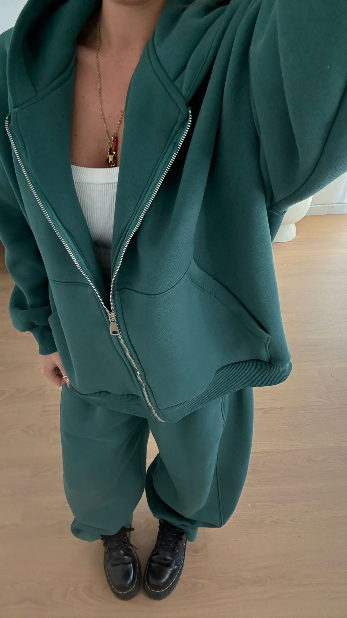 Coordinato da donna felpata internamente composto da felpa oversize con cappucci e chiusura zip sul davanti e pantalone con elastico in vita e vestirà bene fino a d una M/L