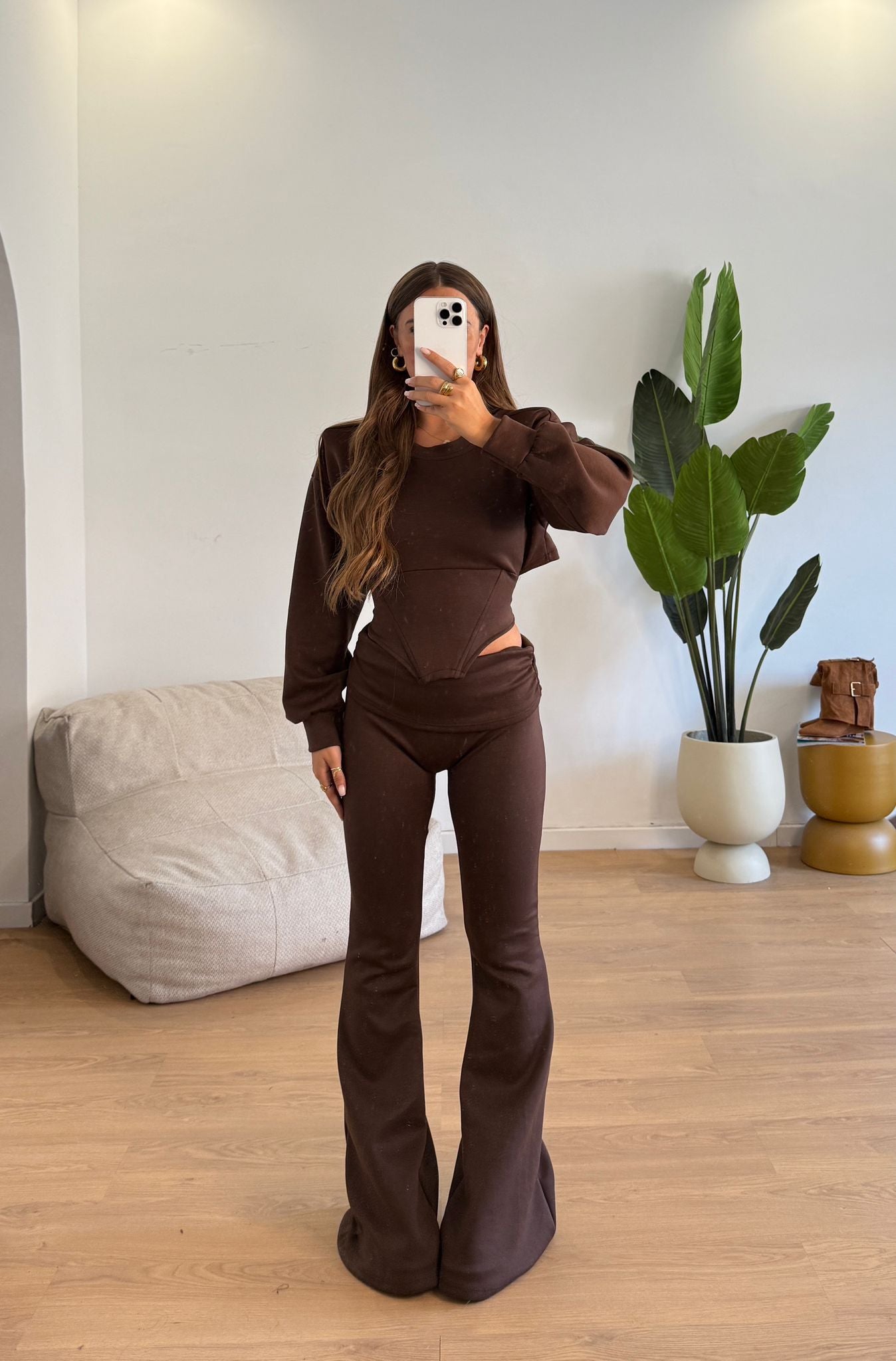 Coordinato da donna composto da felpa crop e pantalone con elastico in vita interno e vestirà bene fino ad una M/L
