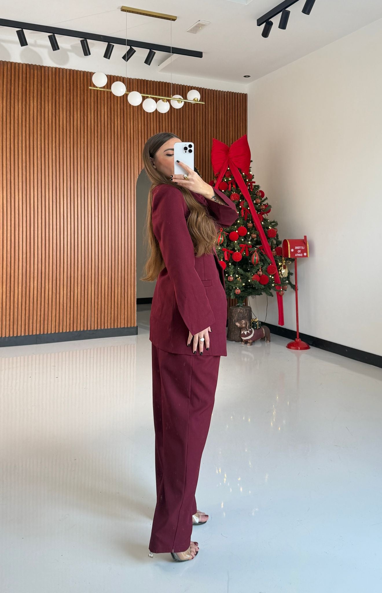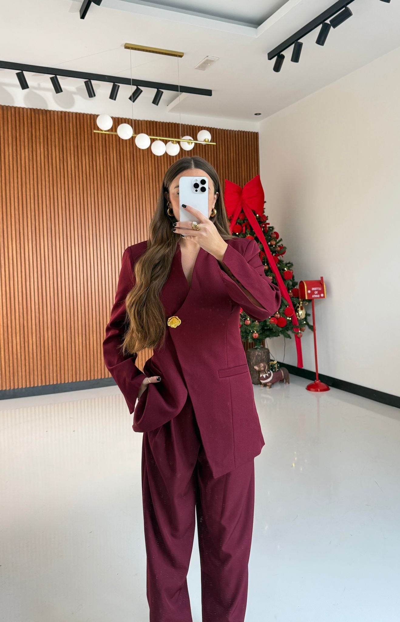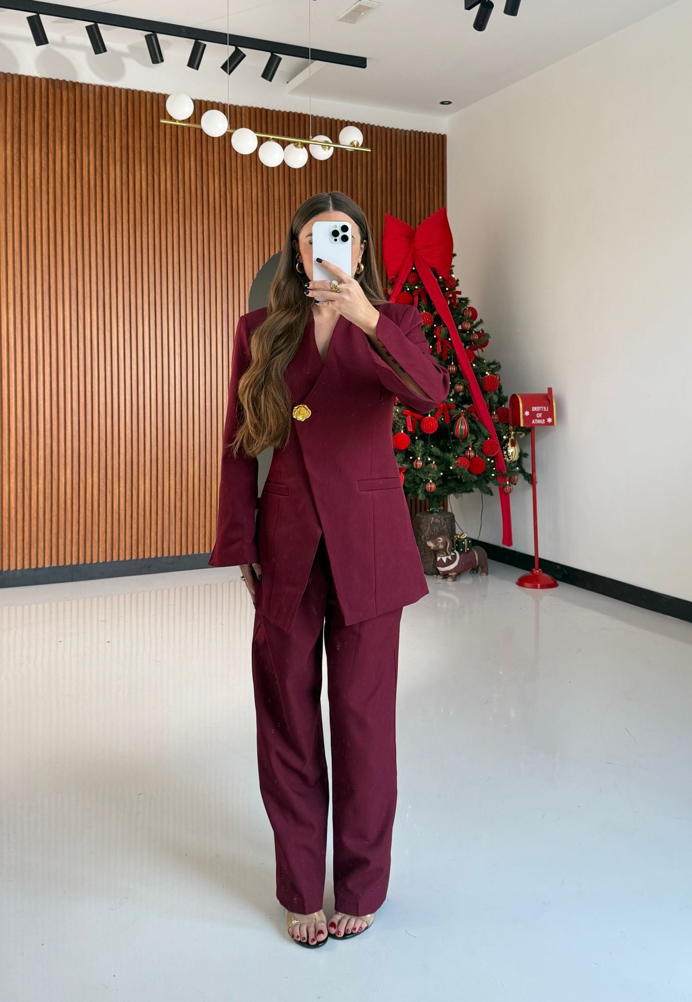 Coordinato da donna in cotone doppio con giacca con spalline imbottite, foderata internamente e chiusura sul davanti con particolarità rosa laccata in oro, mentre il pantalone con chiusura bottoncino e zip sul davanti, top quality e veste bene la propria taglia e la modella indossa taglia S