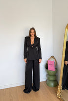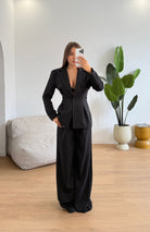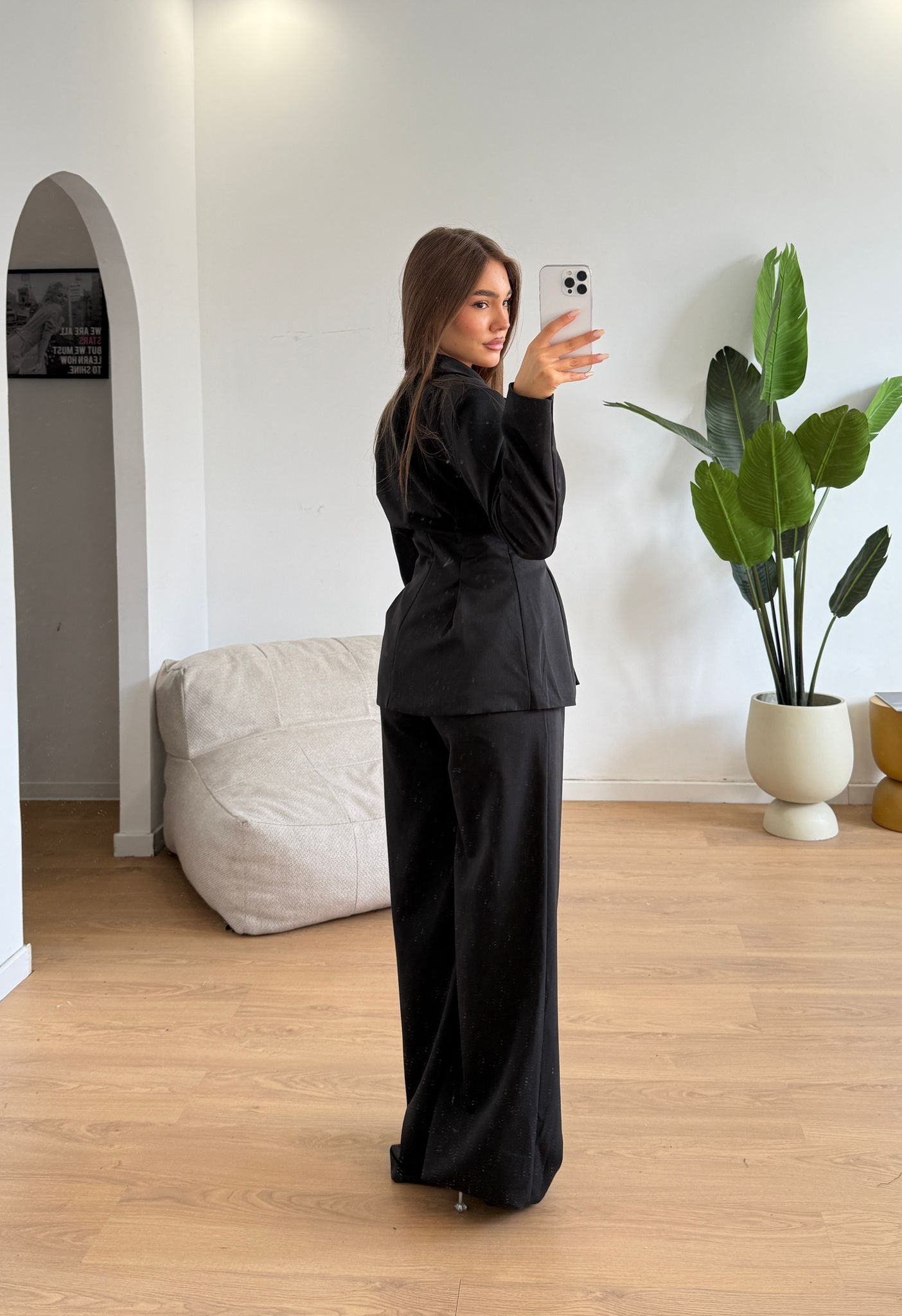 Coordinato da donna composto da giacca con spalline imbottite e pantalone con elastico in vita e vestirà bene fino ad una M/L