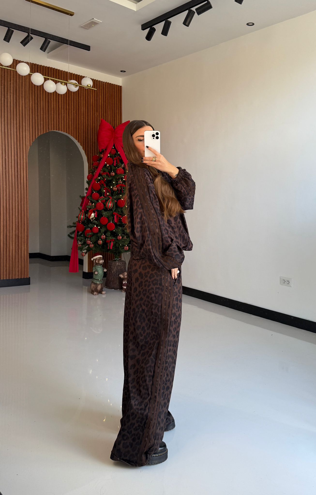 Coordinato da donna fantasia animalier composto da felpa con chiusura in zip sul davanti e pantalone con elastico in vita e vestirà bene fino ad una M /L piena