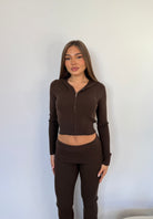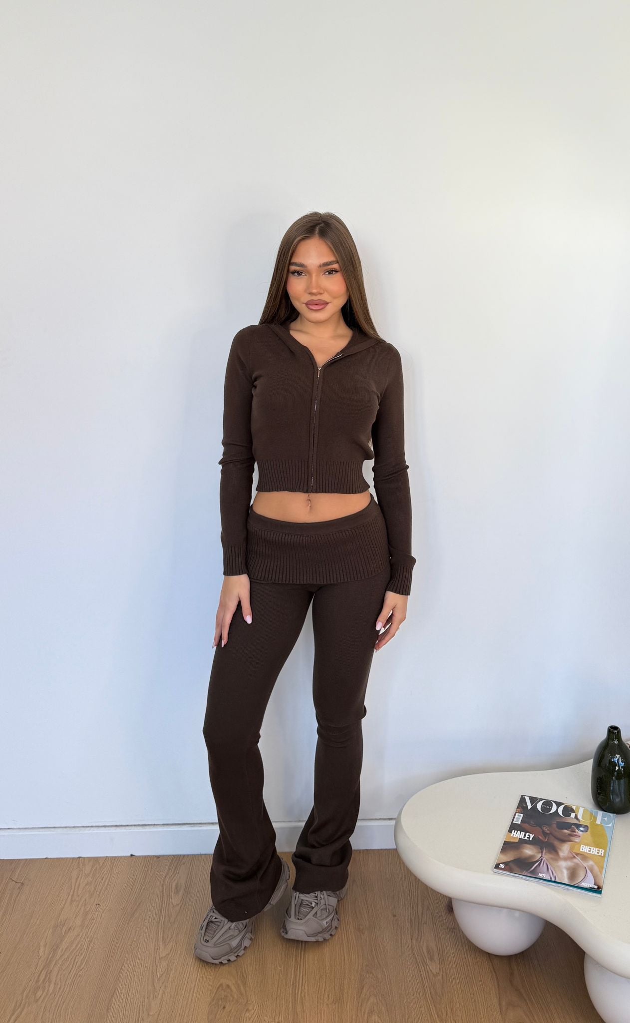 Coordinato da donna composto da felpa crop con cappuccio e chiusura zip sul davanti e e pantalone a vita alta, tessuto elasticizzato e vestirà bene fino ad una M/L