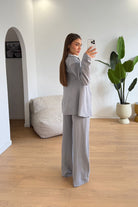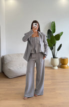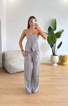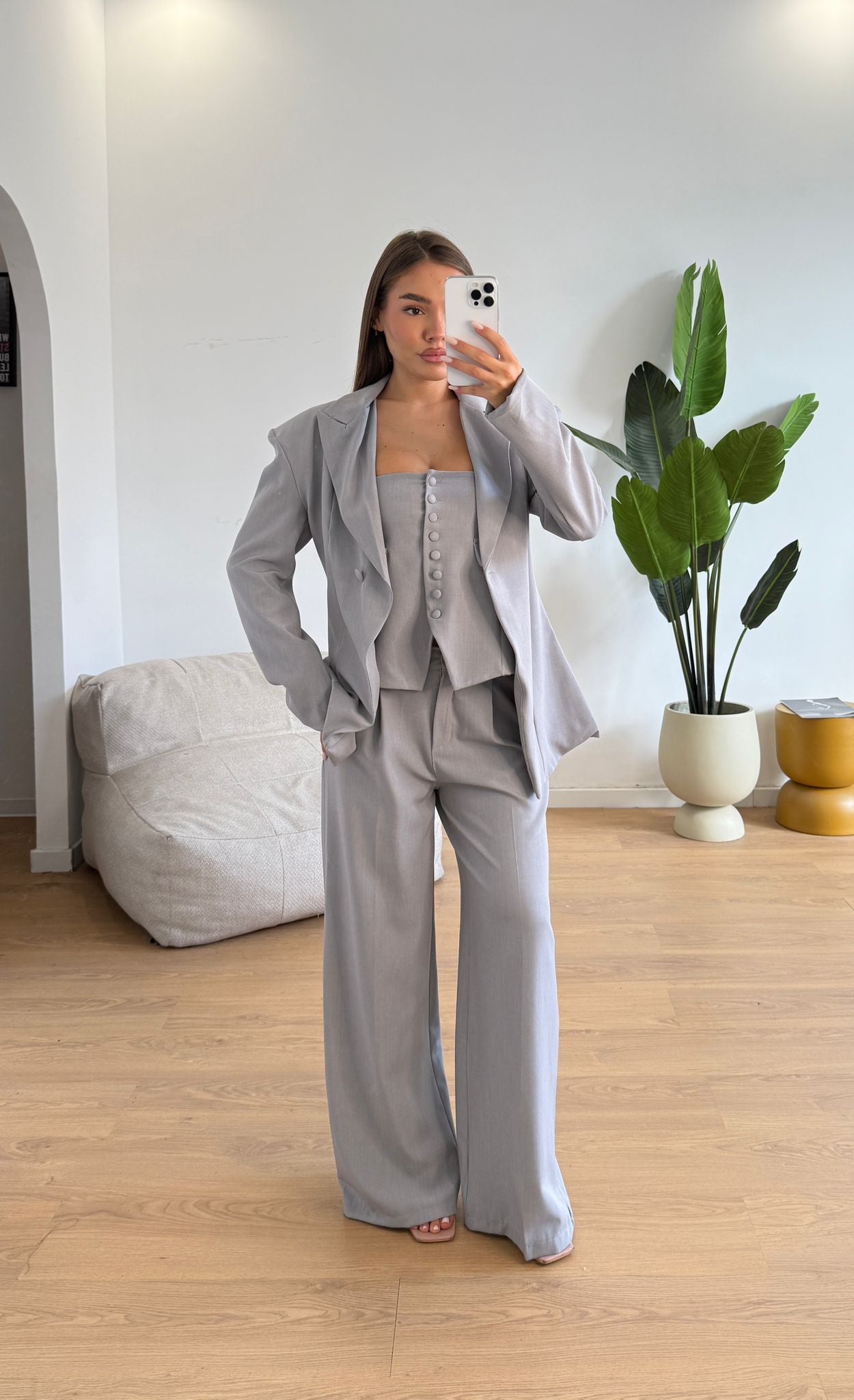 Coordinato da donna composto da giacca con spalline imbottite e foderar internamente, corsetto e pantalone con elastico in vita e vestirà bene fino ad una M/L