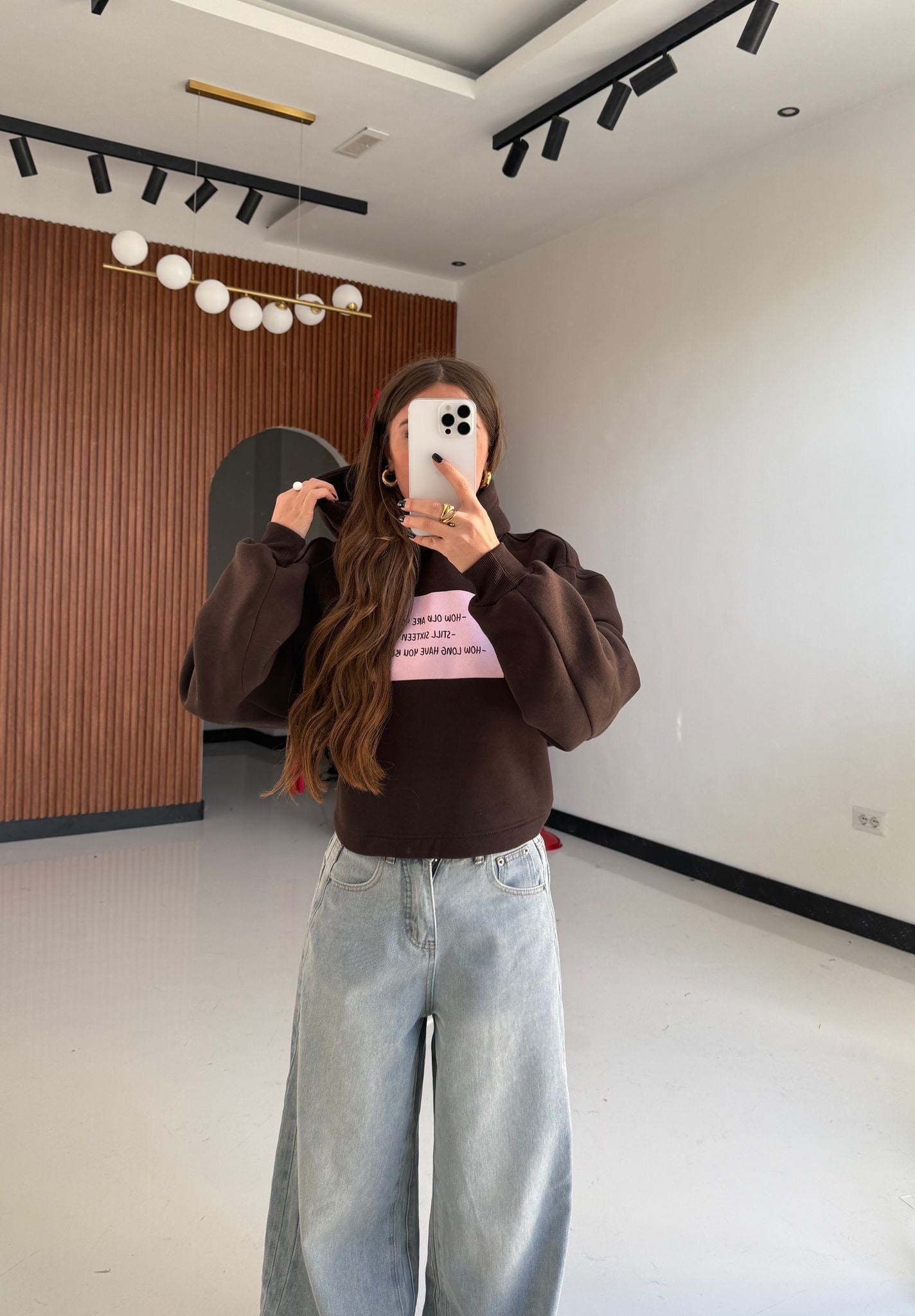 Felpa da donna crop con cappuccio e polsini, felpata internamente in pile e vestirà bene fino ad una M /L