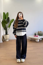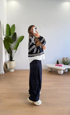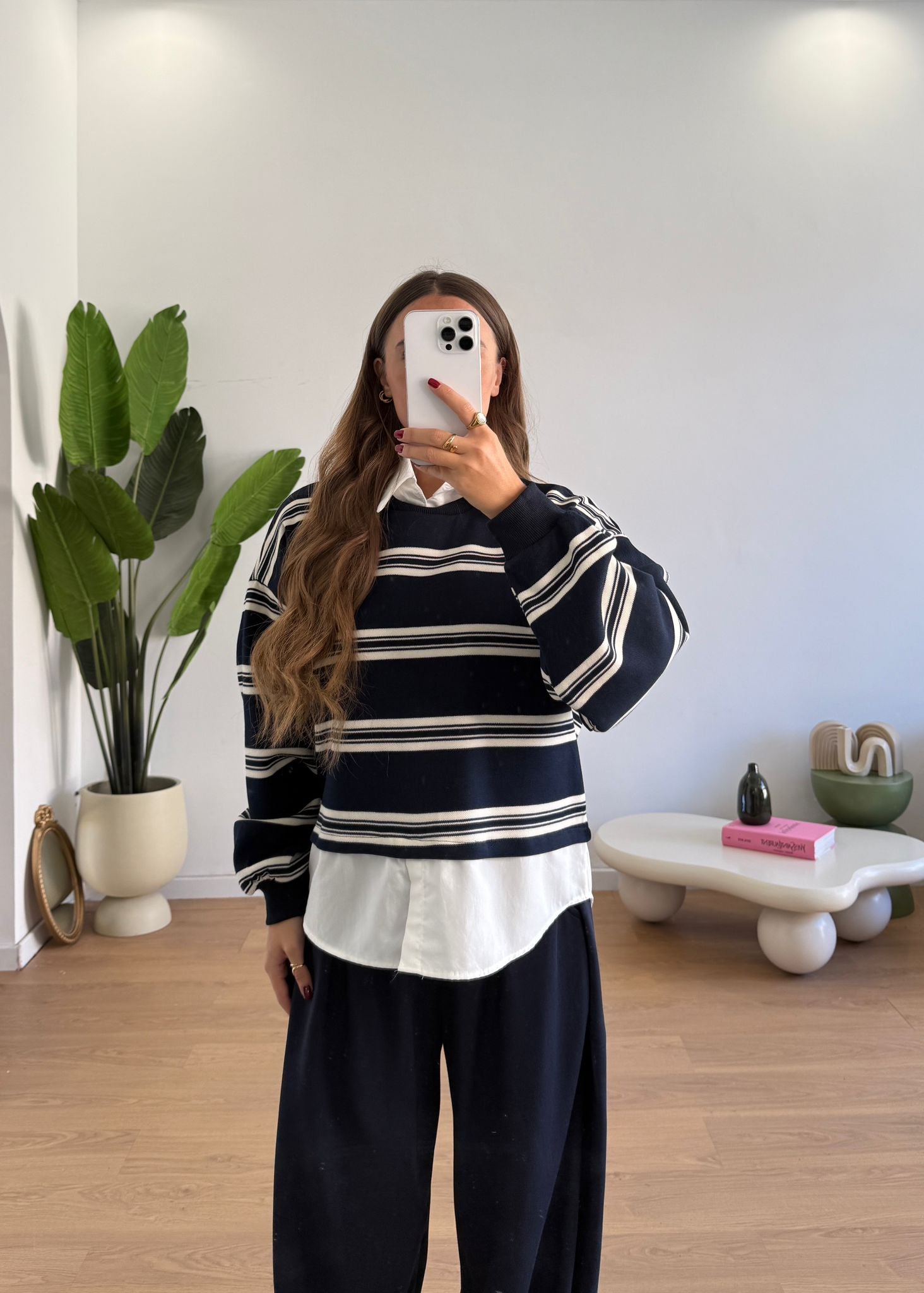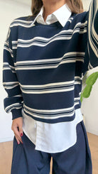 Felpa da donna con colletto camicia cucito e veste regolarmente la propria taglia e la modella indossa taglia S/M