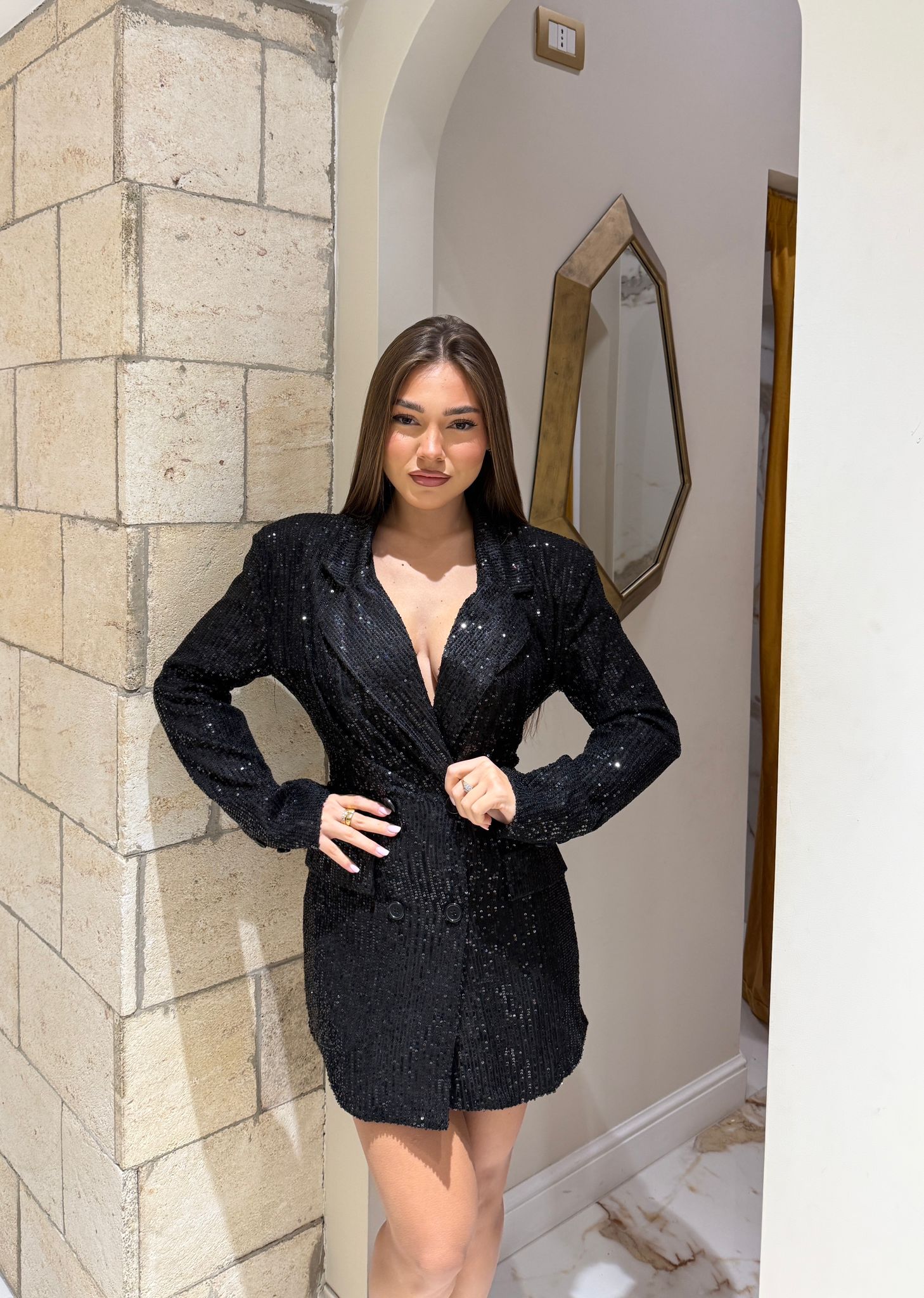 Giacca/abitino da donna in paillettes con spalline imbottite e vestirà bene fino ad una 42 piena