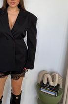 Giacca da donna con spalline rialzate, foderata internamente top quality e veste regolarmente la propria taglia e la modella indossa taglia S