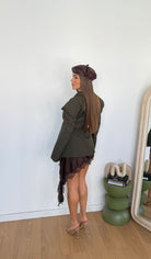 Giacca da donna con spalline rialzate, foderata internamente top quality e veste regolarmente la propria taglia e la modella indossa taglia S