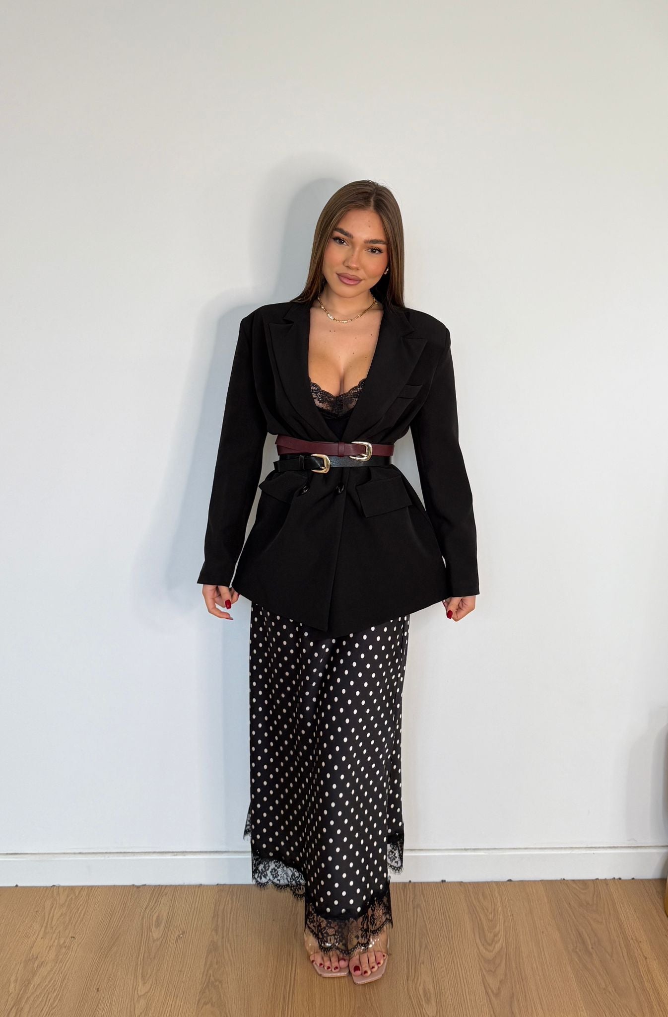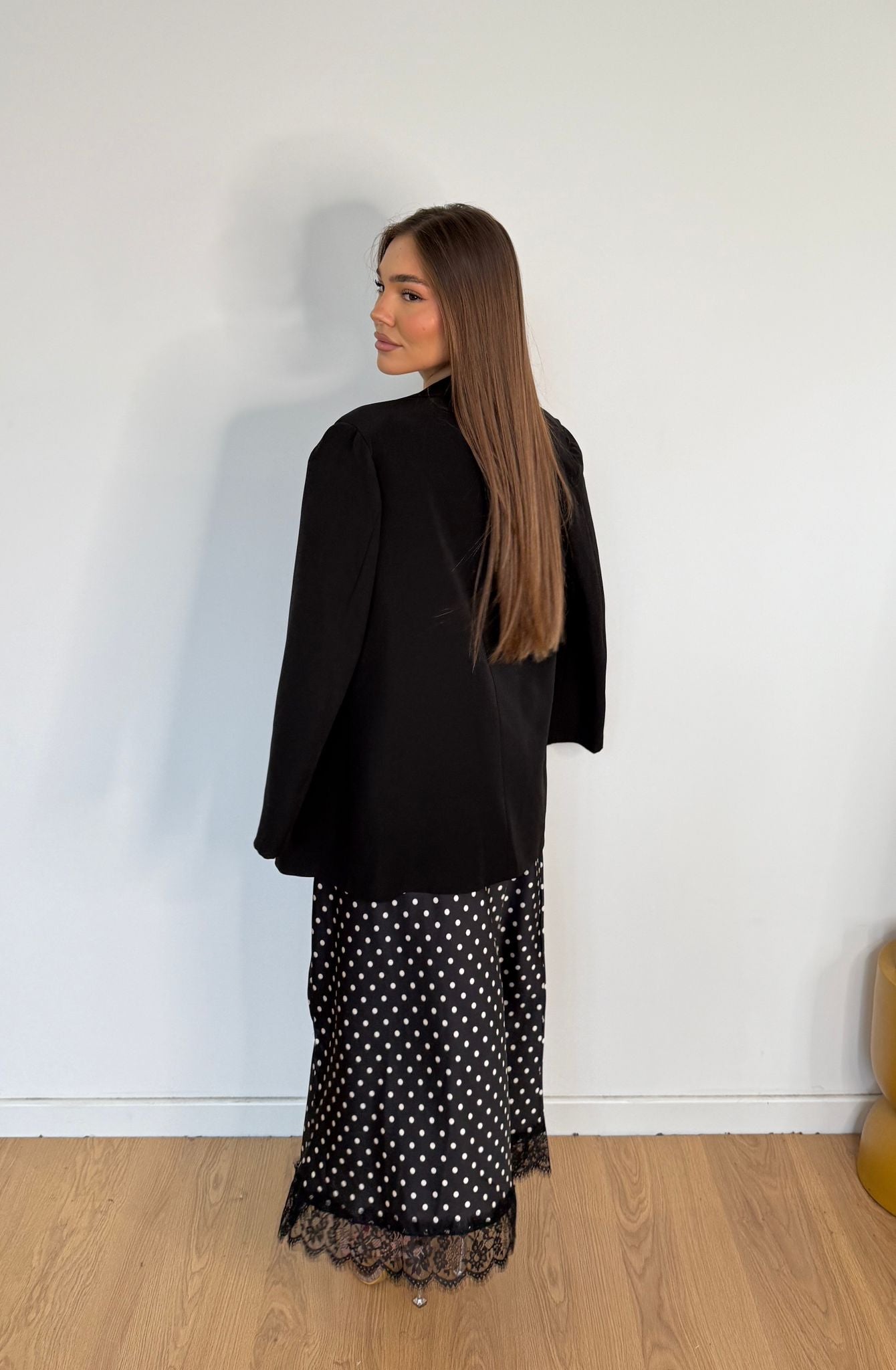 Giacca da donna con spalline imbottite e chiusura bottone. Taglia unica, veste bene fino ad taglia M.