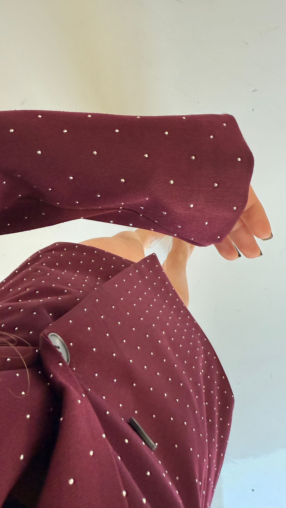 Giacca da donna con particolarità strass, spalline imbottite e foderata internamente, chiusura con bottoncino sul davanti e vestirà bene fino ad una M/L