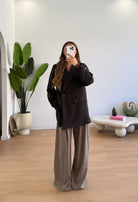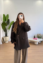 Giacca da donna over con chiusura bottone sul davanti e sul polso. Taglia unica, veste bene fino ad una taglia 44 piena.