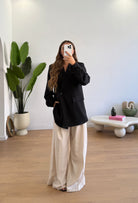 Giacca da donna over con chiusura bottone sul davanti e sul polso. Taglia unica, veste bene fino ad una taglia 44 piena.