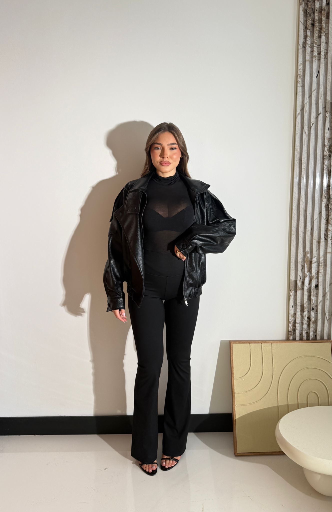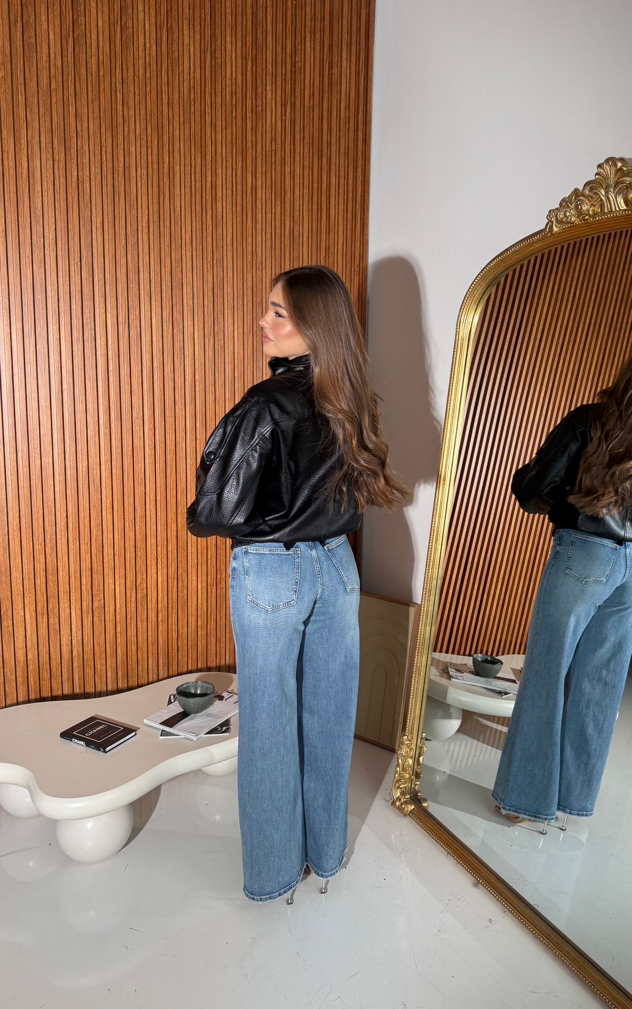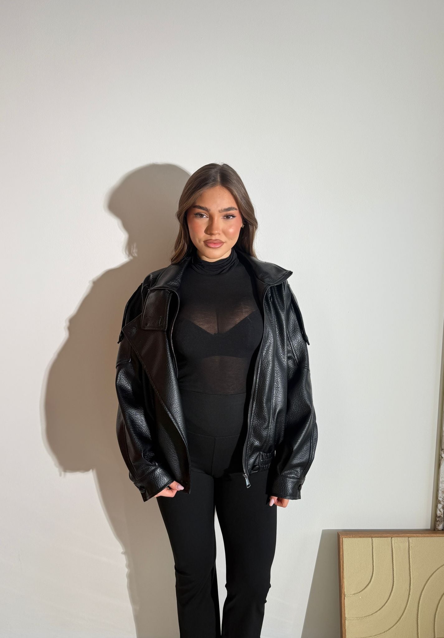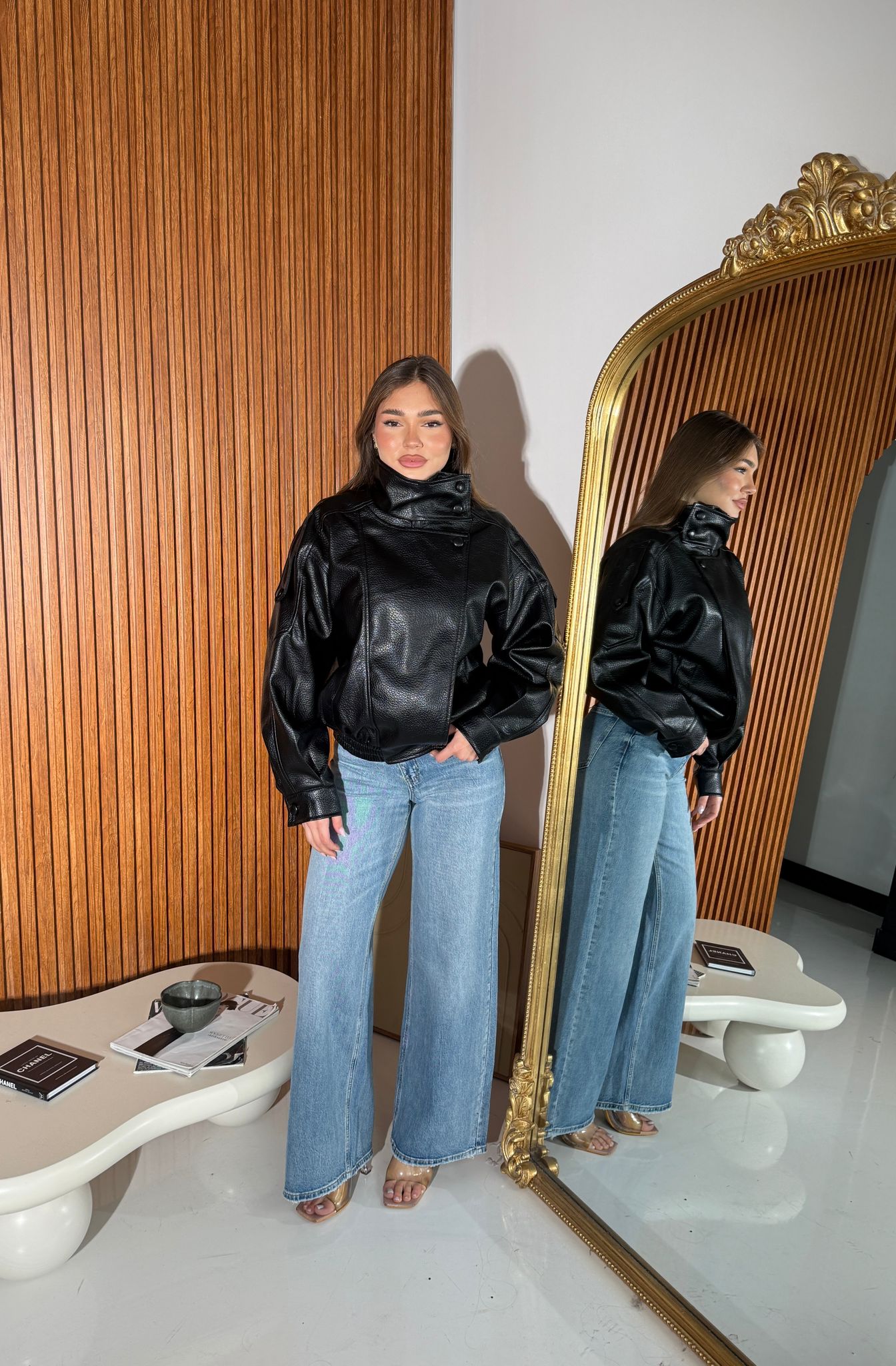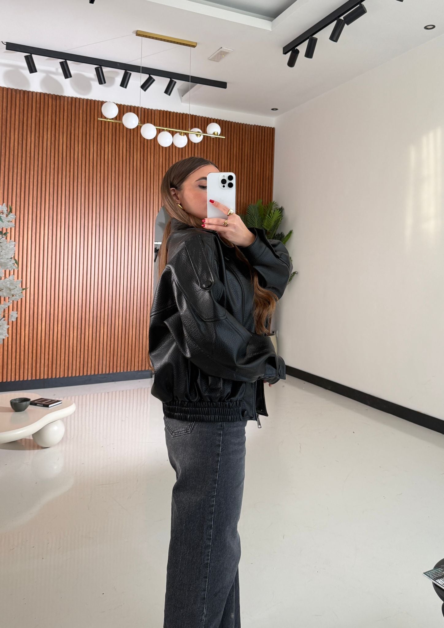 Giubbino da donna in ecopelle, foderato internamente, top quality, con chiusura zip sul davanti ed elastico sul finale. Taglia unica, veste bene fino ad una taglia L/XL. La modella è alta 1,65 e pesa 52/53 kg.