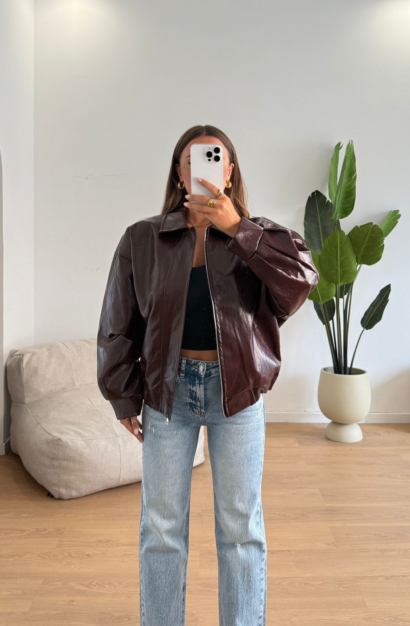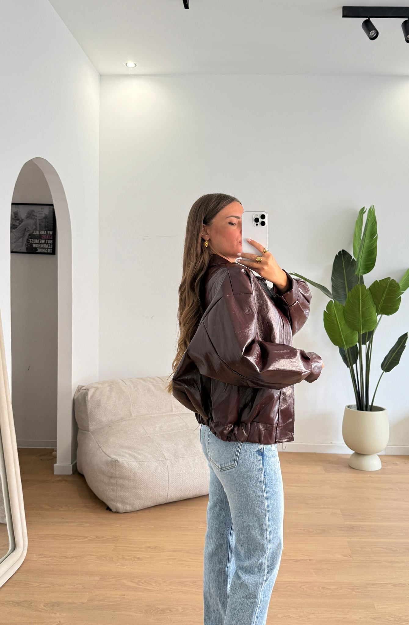 Giubbino da donna in vernice lucida con chiusura zip sul davanti e elastico sul finale, vestirà bene fino ad una M/L