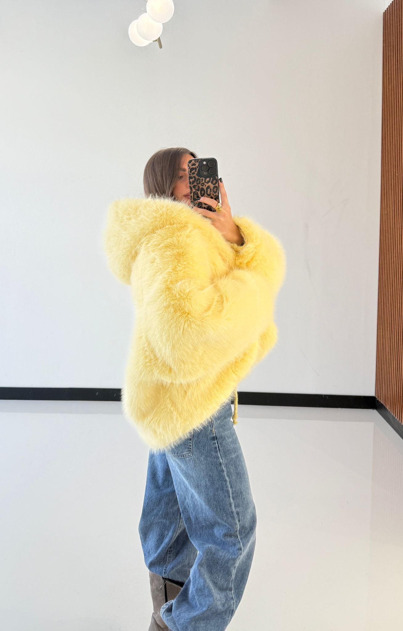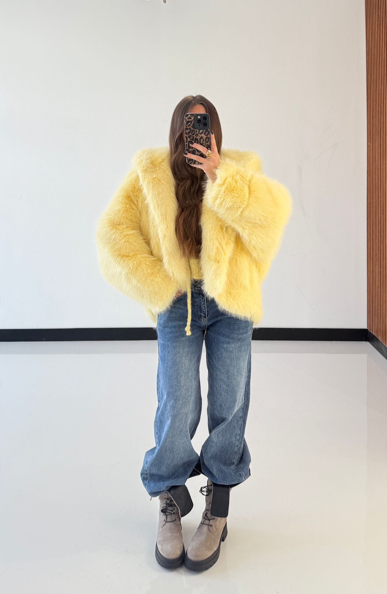 Pelliccia da donna ecofur foderata internamente con cappuccio, top quality e vestirà bene fino a d una L/XL