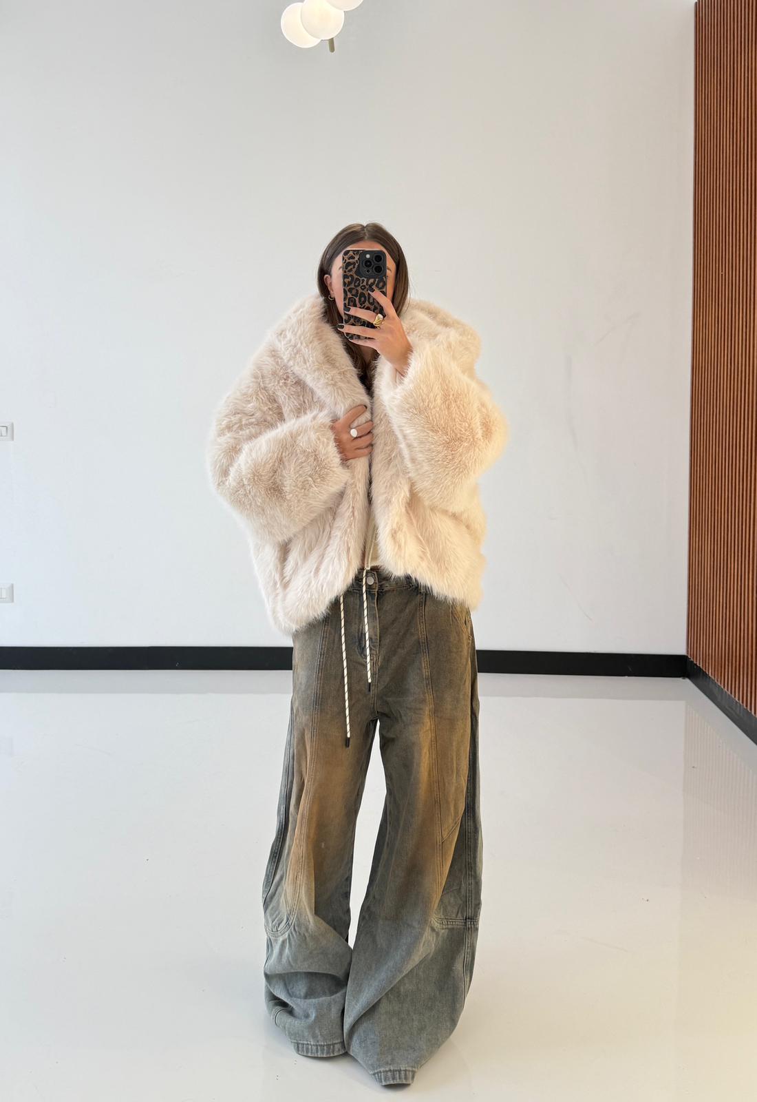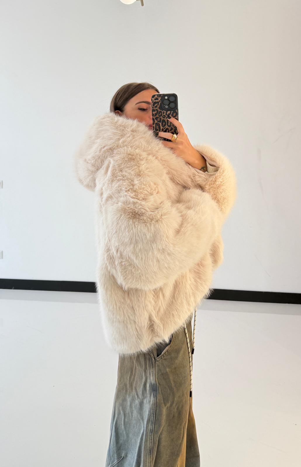 Pelliccia da donna ecofur foderata internamente con cappuccio, top quality e vestirà bene fino a d una L/XL